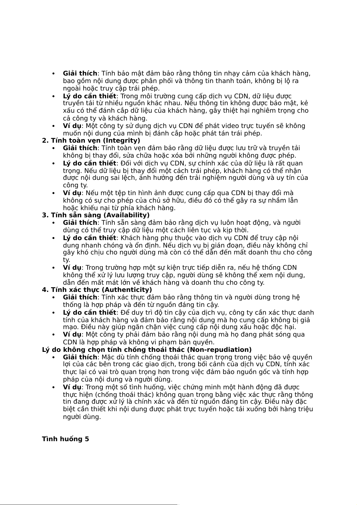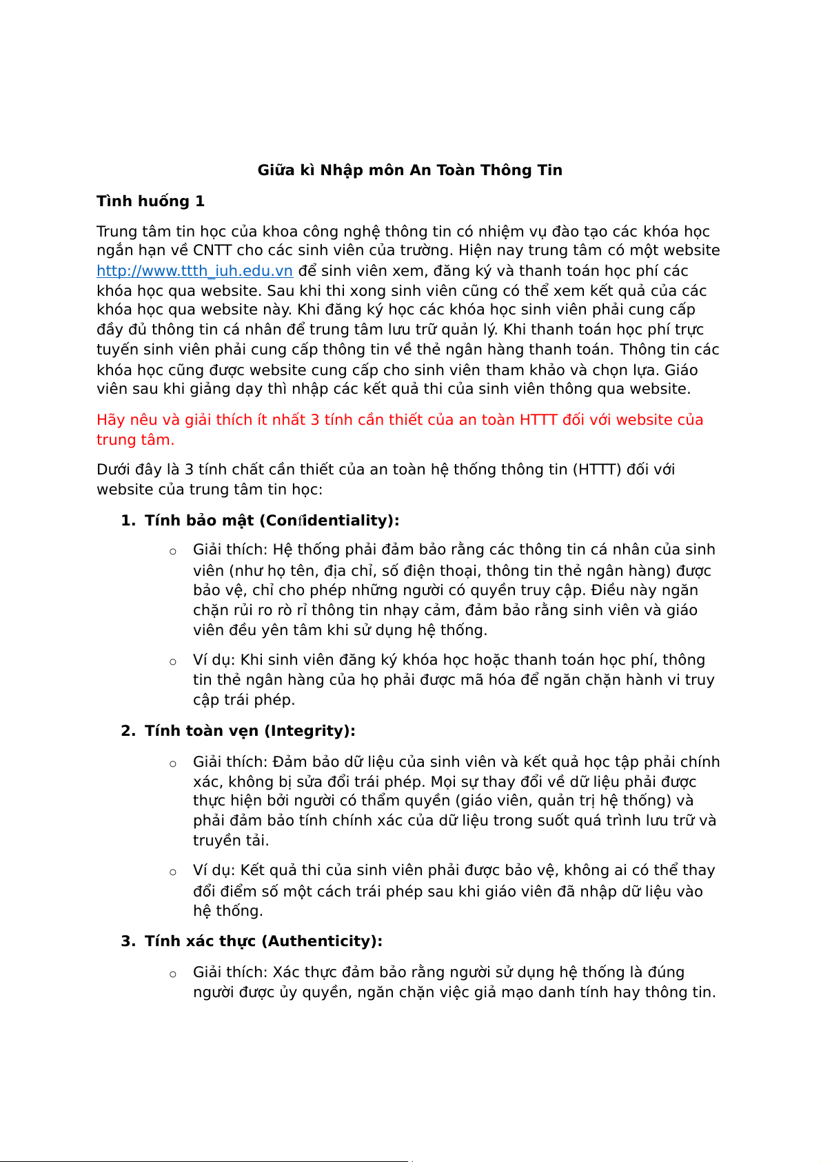 Hãy nêu và giải thích ít nhất 3 tính cần thiết của an toàn HTTT đối với website của trung tâm.