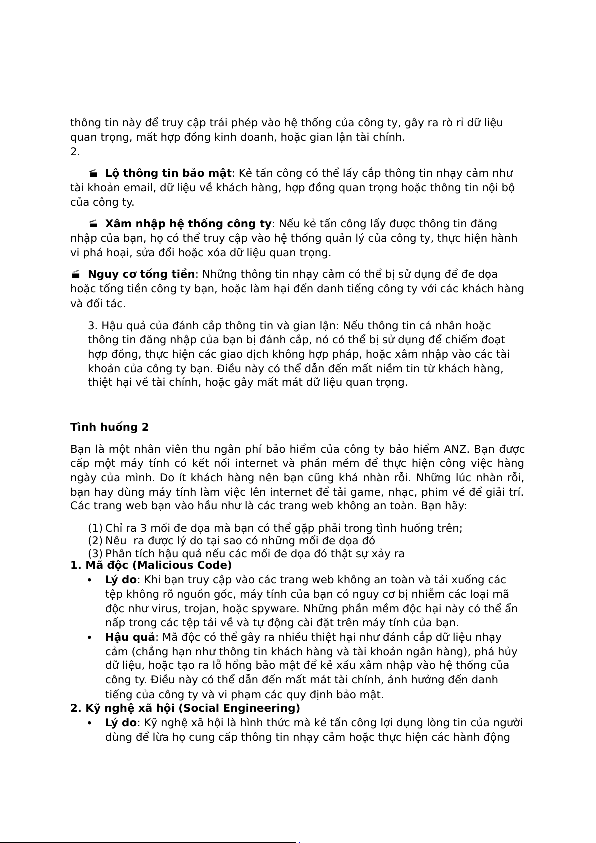 thiệt hại về tài chính, hoặc gây mất mát dữ liệu quan trọng. Tình huống 2