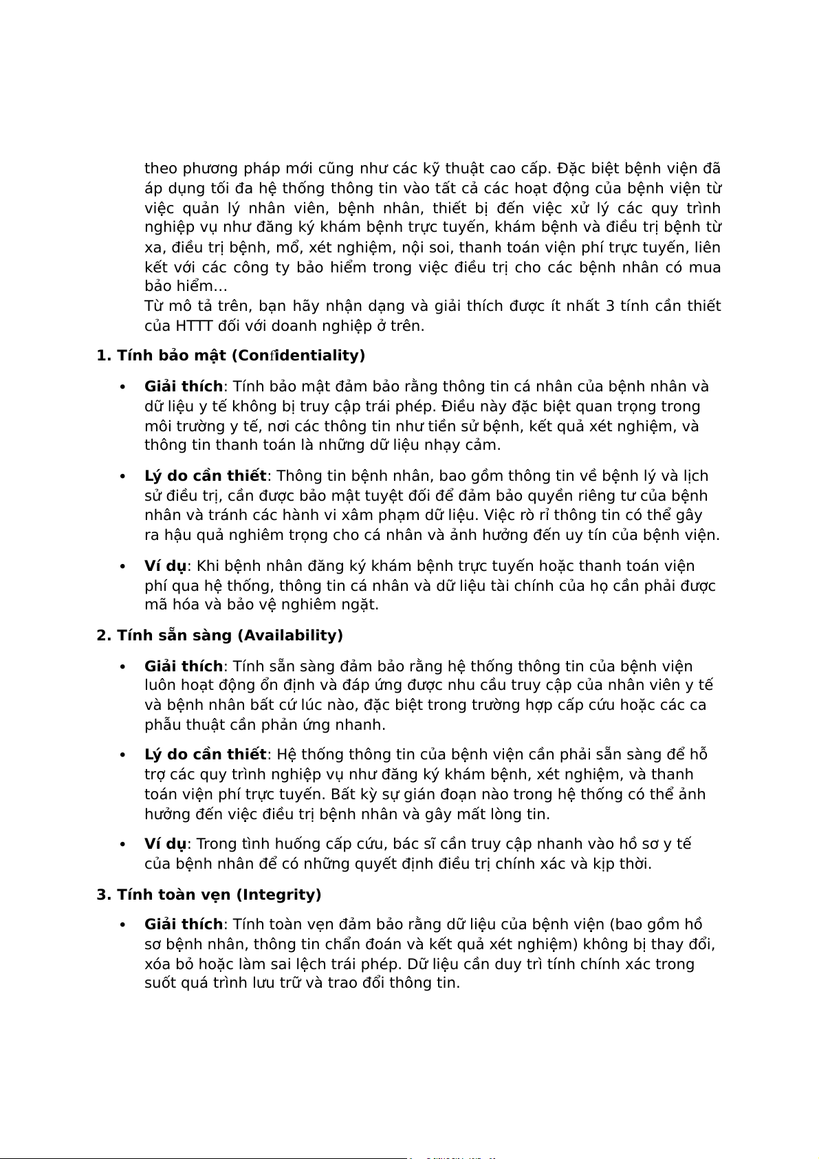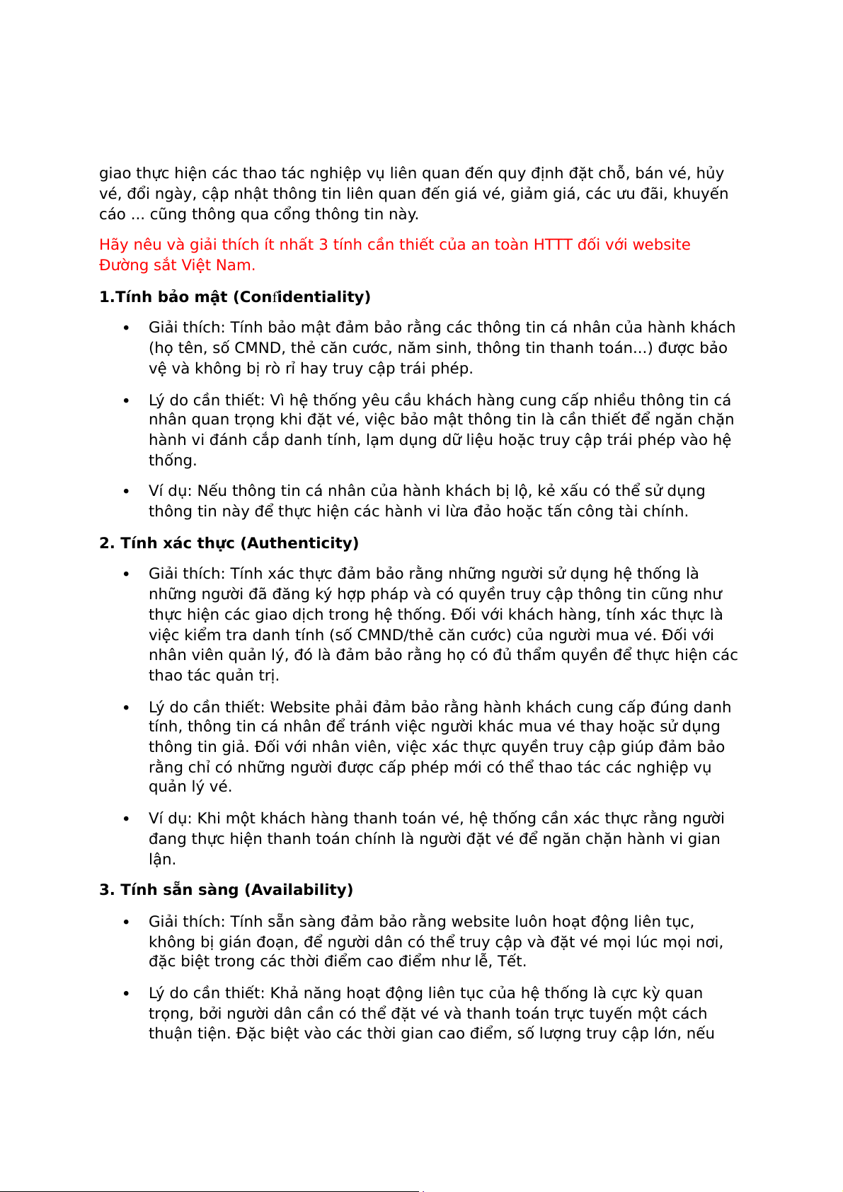 Dưới đây là 3 tính chất cần thiết của an toàn hệ thống thông tin (HTTT) đối với