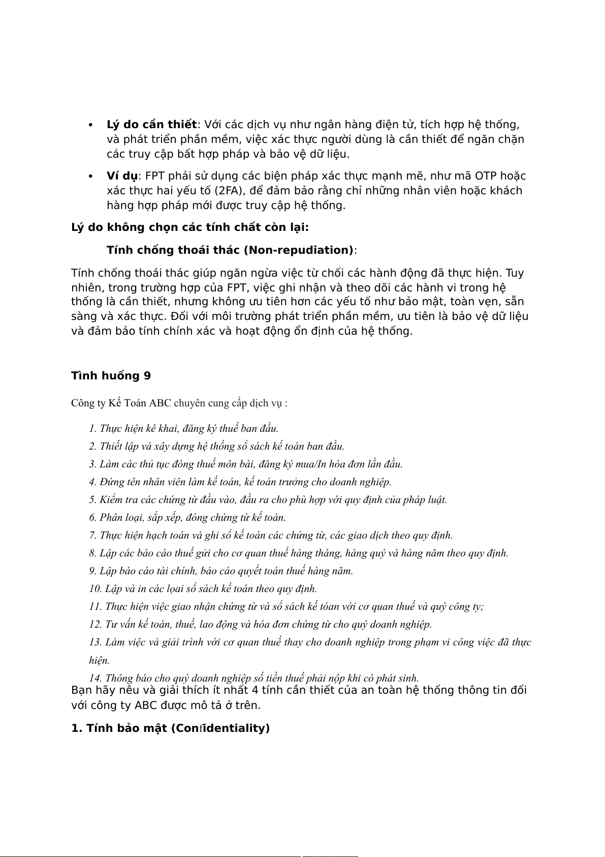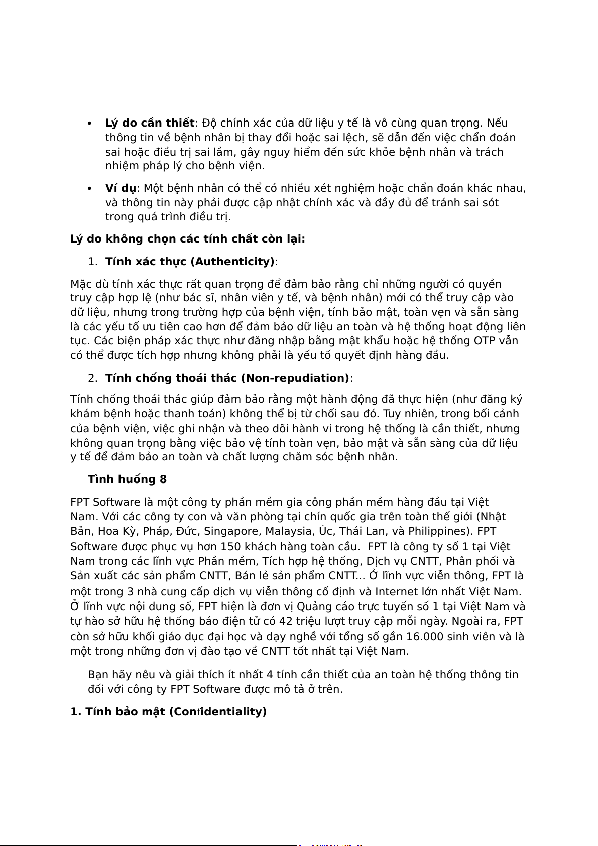 1. Tính bảo mật (Confidentiality): o