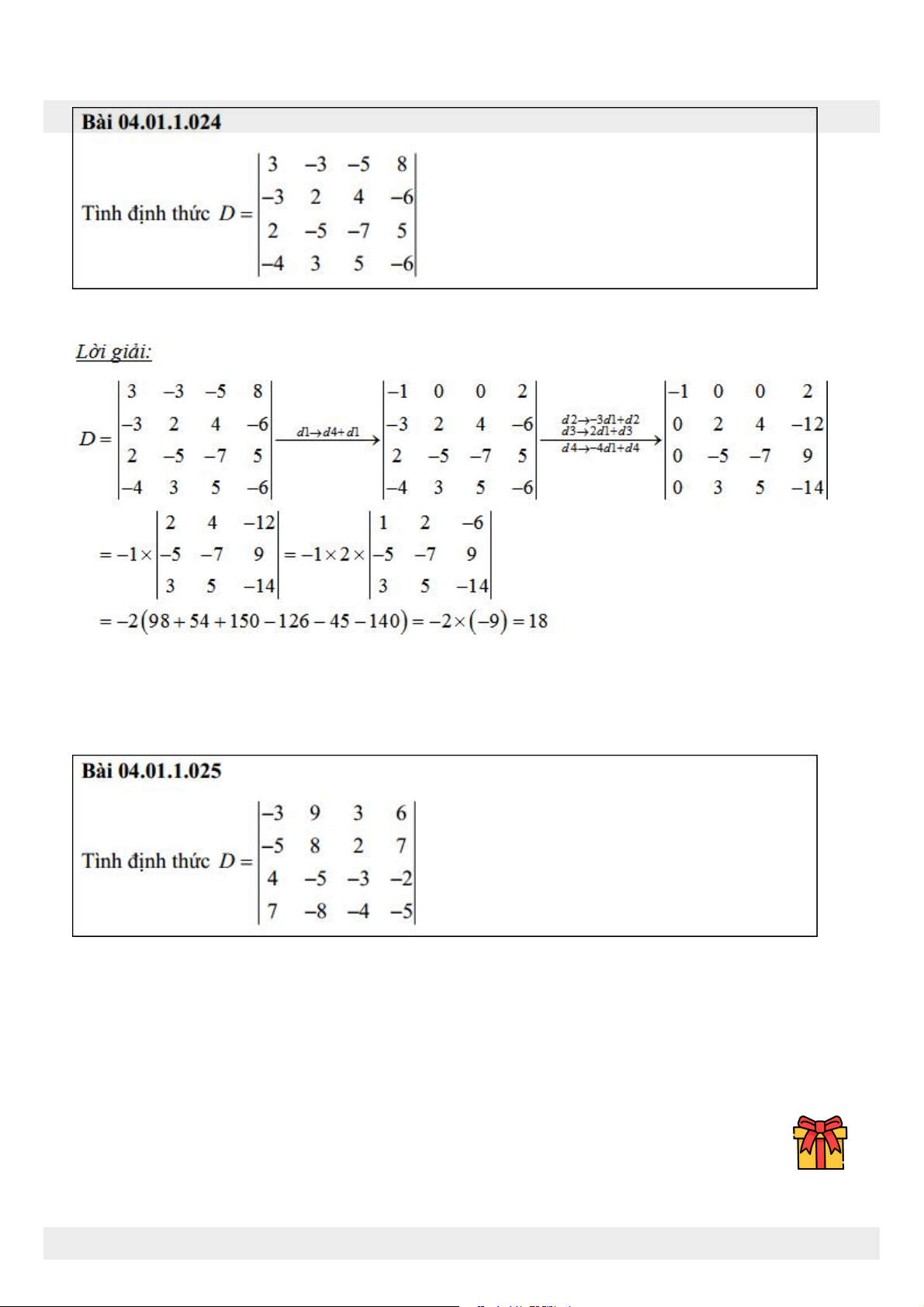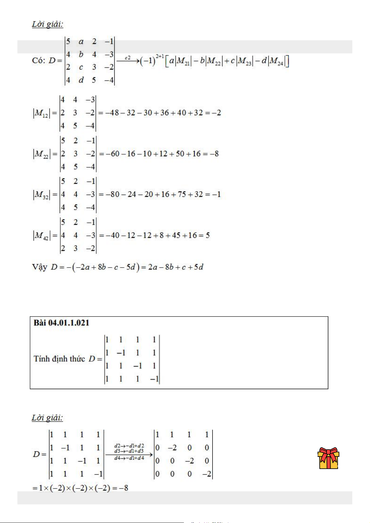 Bài 1: Giải định thức cấp 4 sau: s TTnguyen