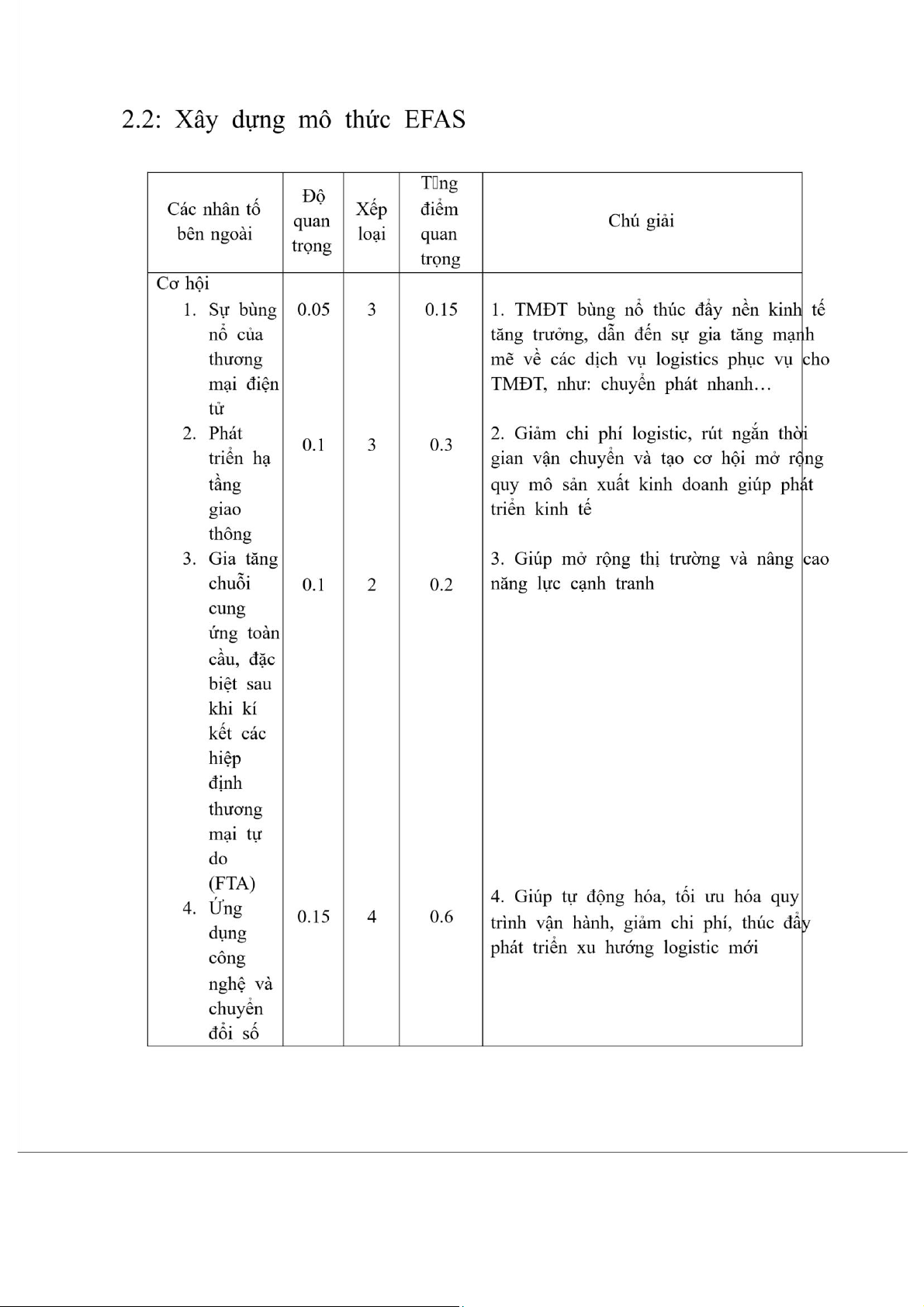 dựng mô thức EFAS của doanh nghiệp Vinafreight Hà Nội, tháng 2 năm 2025 1 2