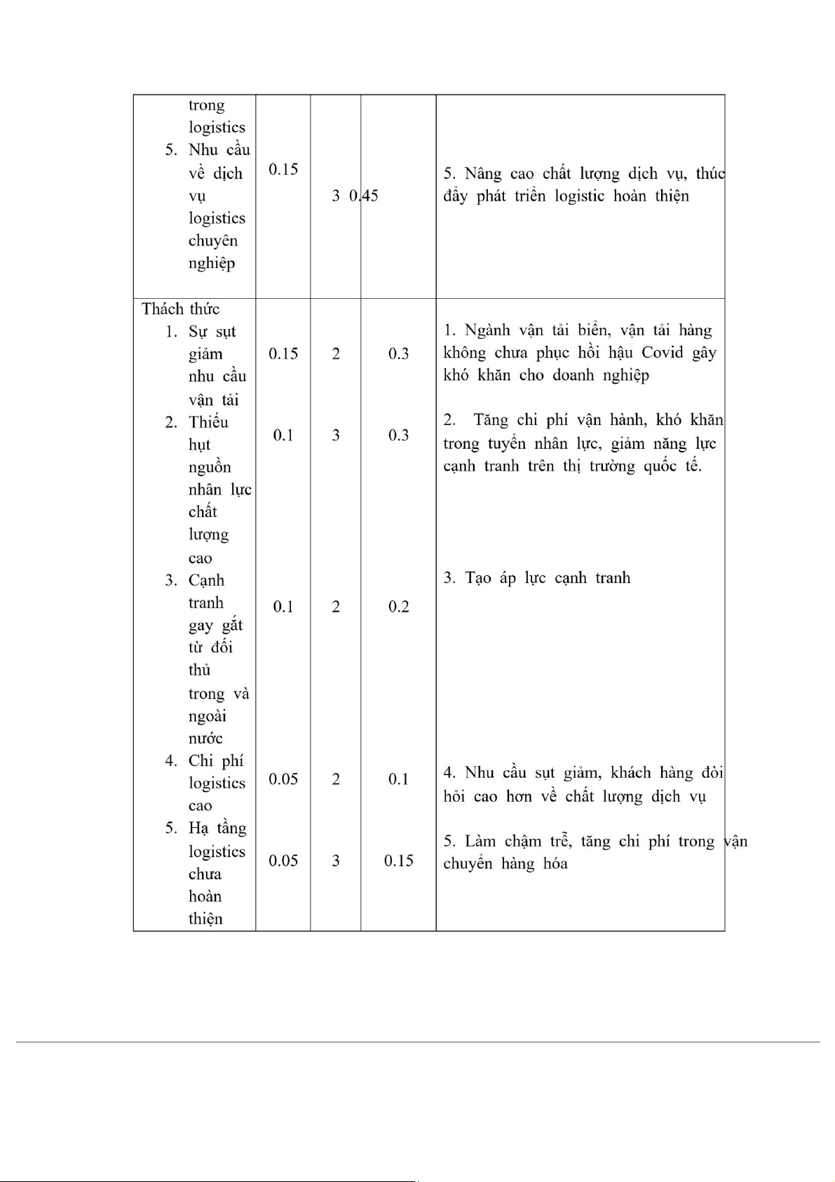 nhất của doanh nghiệp Vinafreight khi đạt điểm quan trọng 0.6. Công nghệ 4.0 đang phát triển mạnh