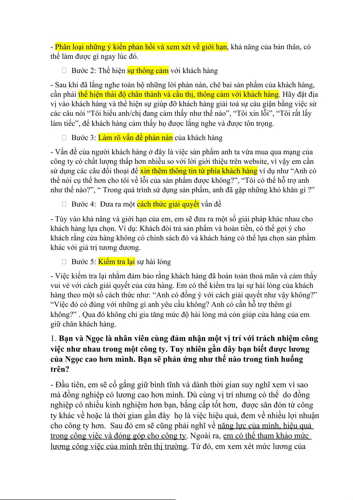 1. Bạn và Ngọc là nhân viên cùng đảm nhận một vị trí với trách nhiệm công