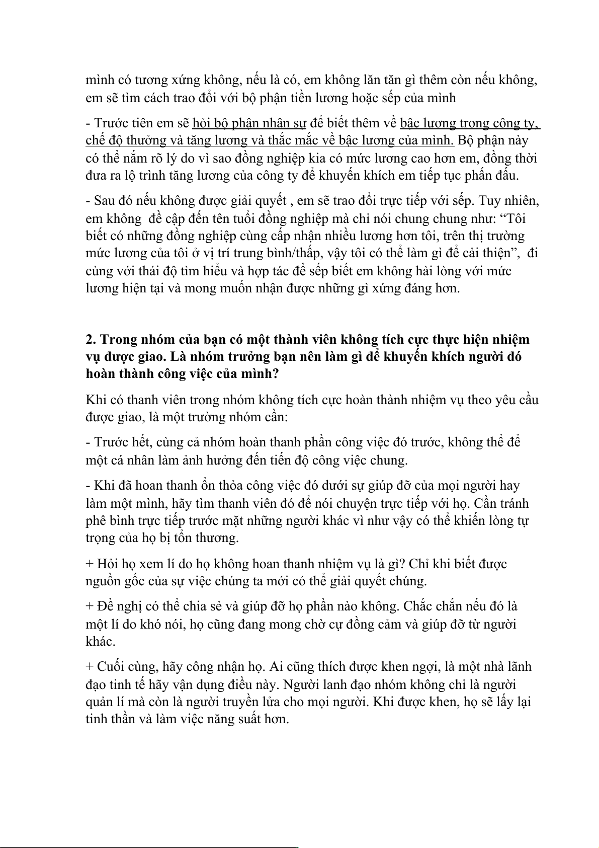 vụ được giao. Là nhóm trưởng bạn nên làm gì để khuyến khích người đó