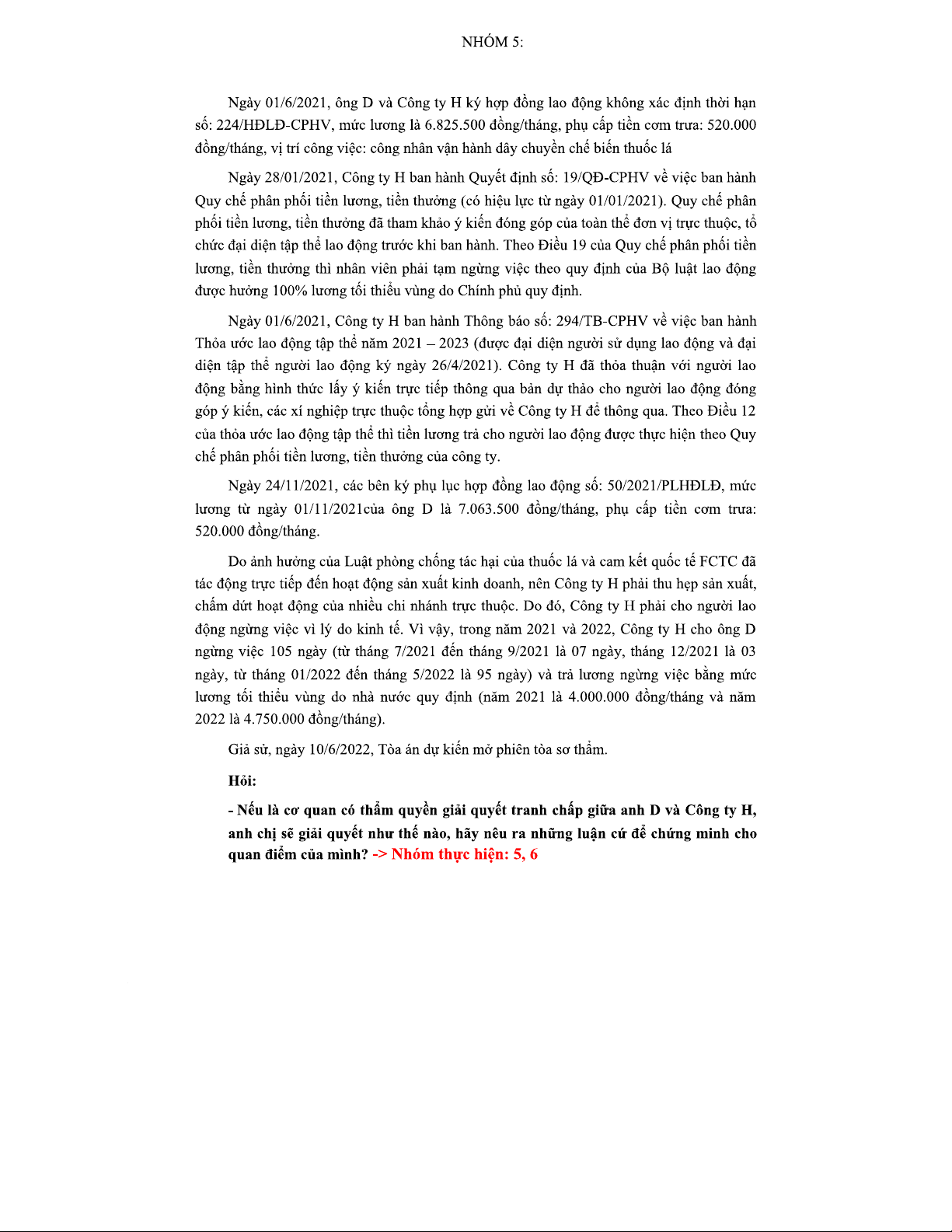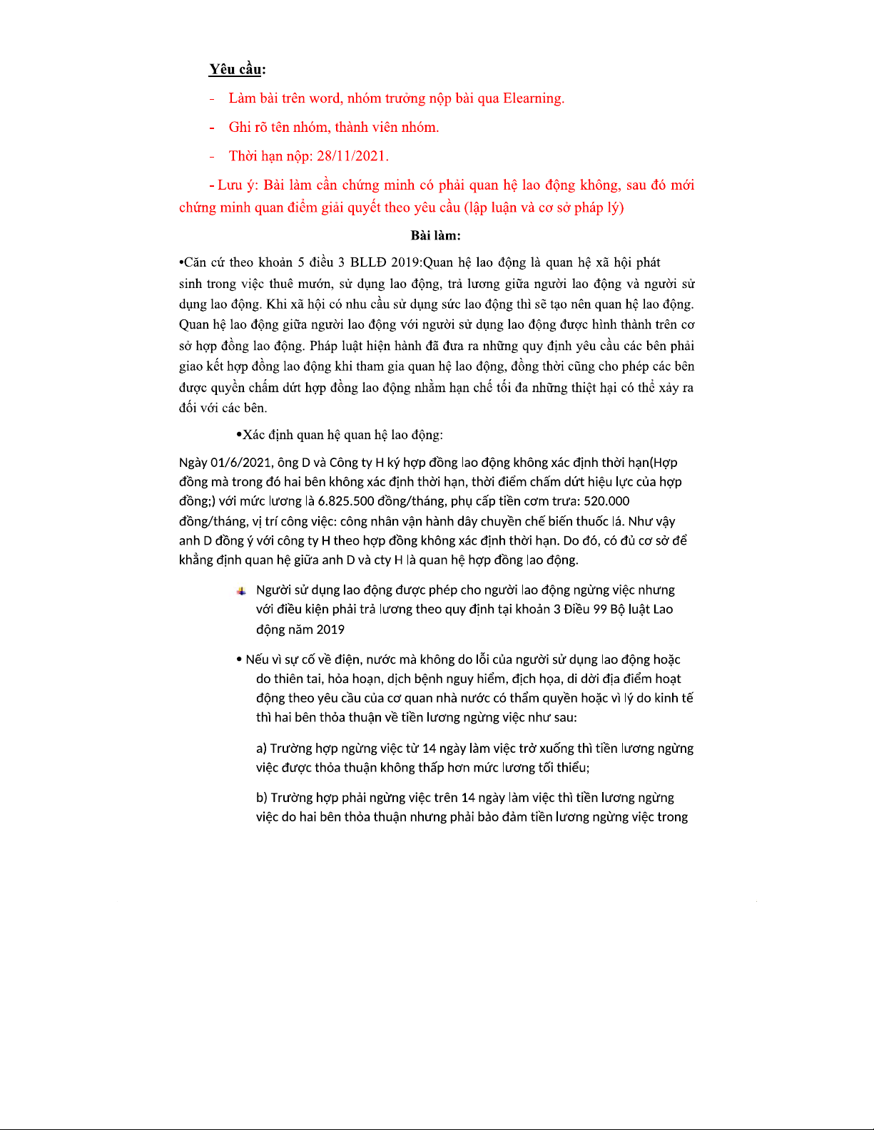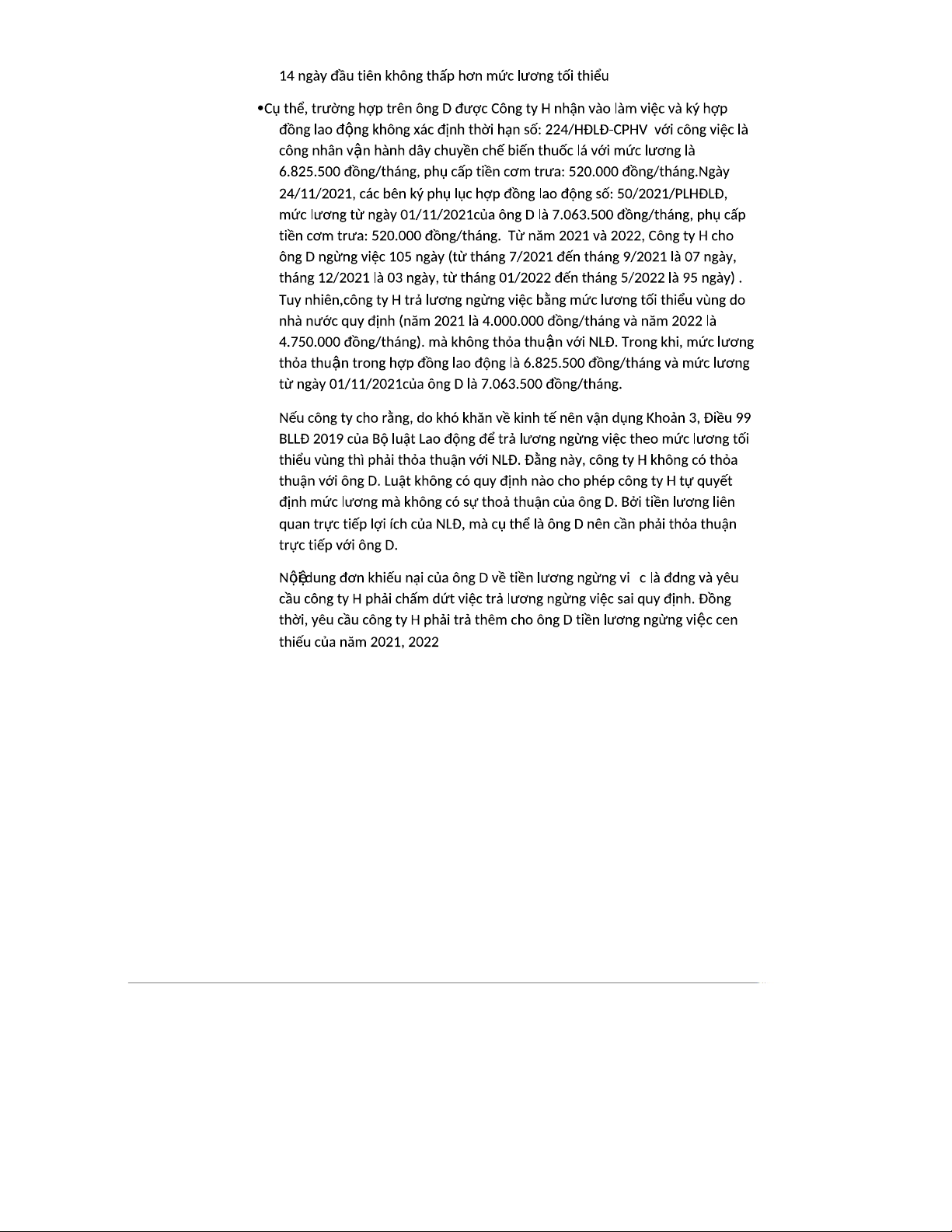 Tình huống tranh chấp lao động giữa ông D và Công ty H 2021