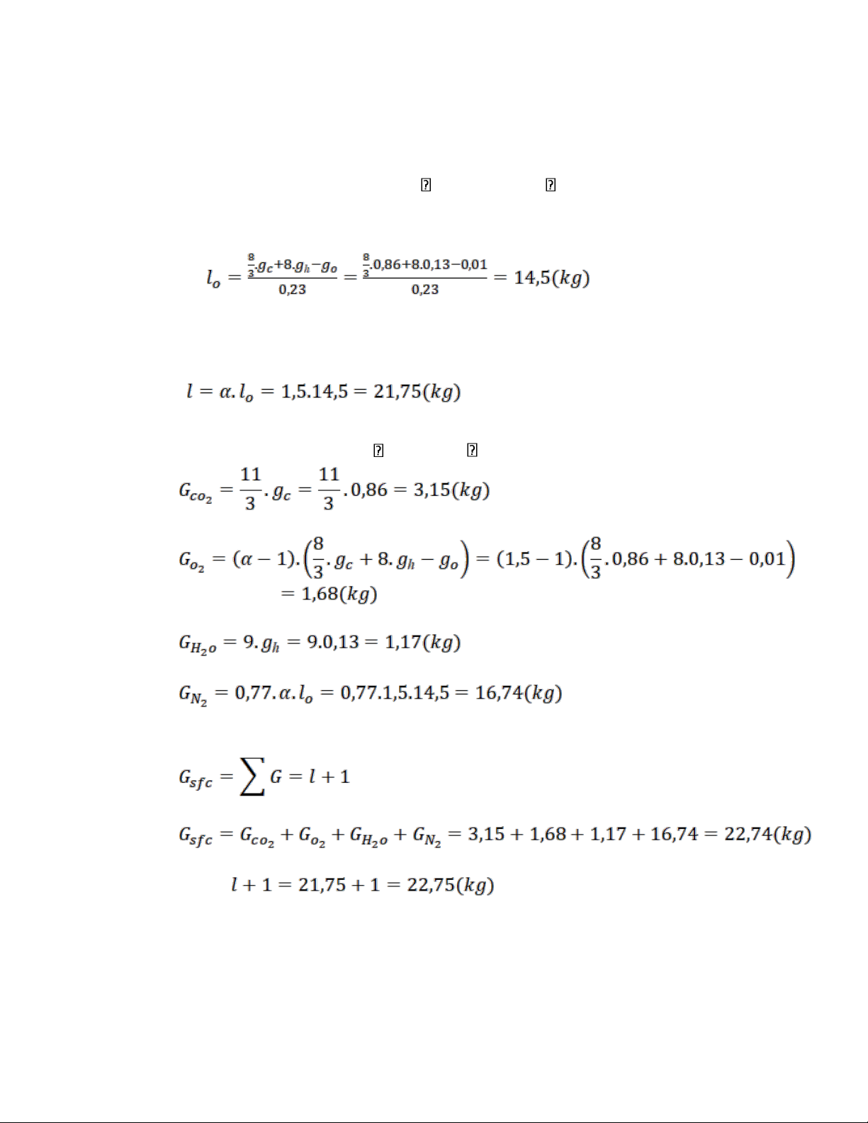 (mg/ck.lít) ta có các phương trình cháy ở các tốc độ như sau: Hu=10400 kcal/kg
