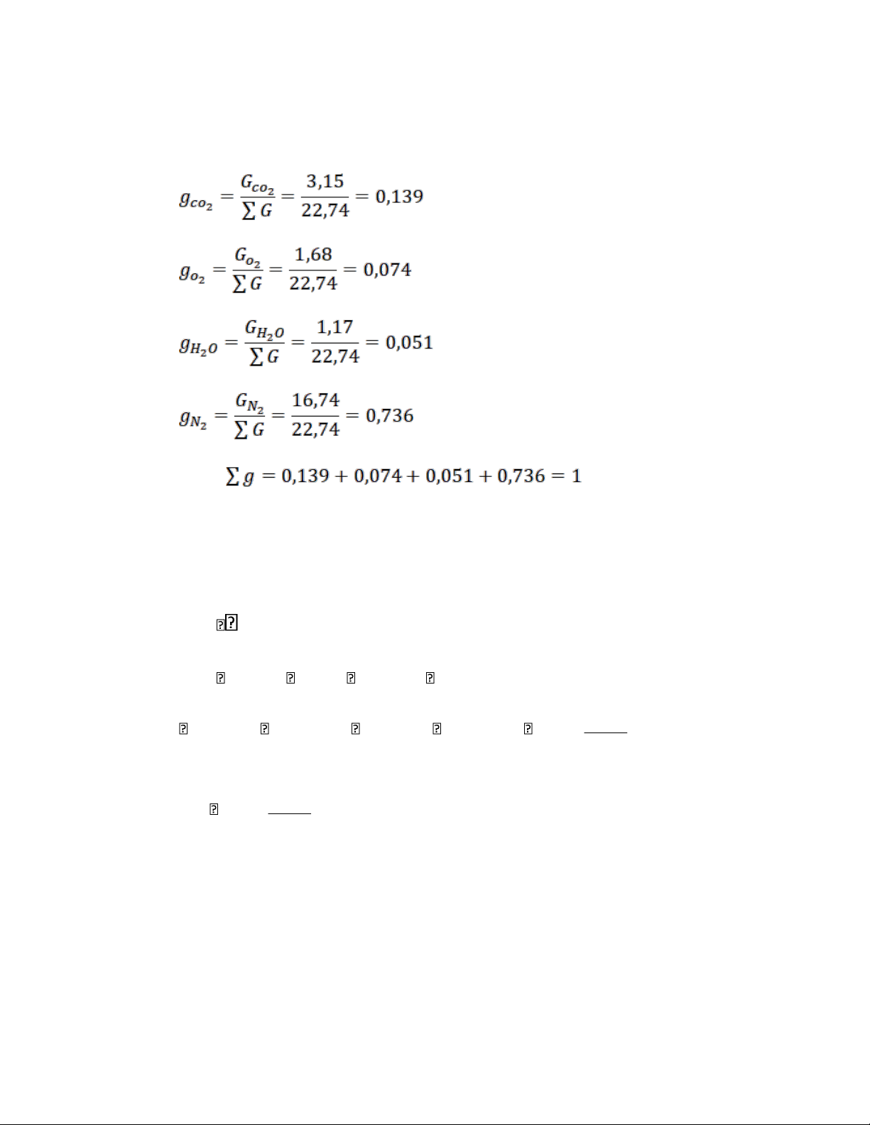 2.1.2.2.Thành phần khối lượng của các chất khí thành phần trong sản phẩm cháy Kiểm tra: vậy thành phần khối