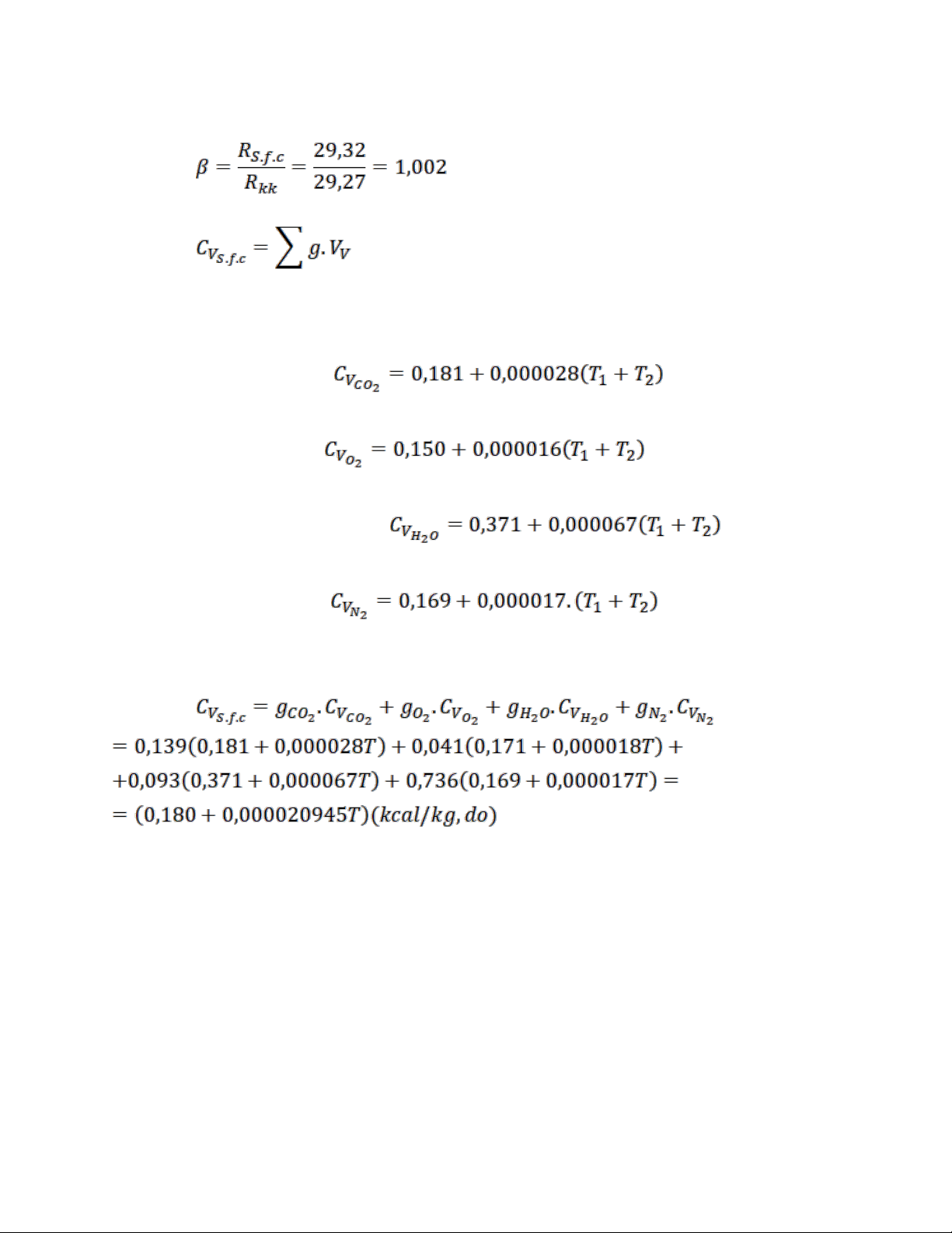 Nhiệt dung riêng của các thành phần của sản phẩm cháy CV tính theo các hệ thức sau đây : Của khí CO2 : Của khí O2 : Của hơi nước H2O : Của nitơ N2 :