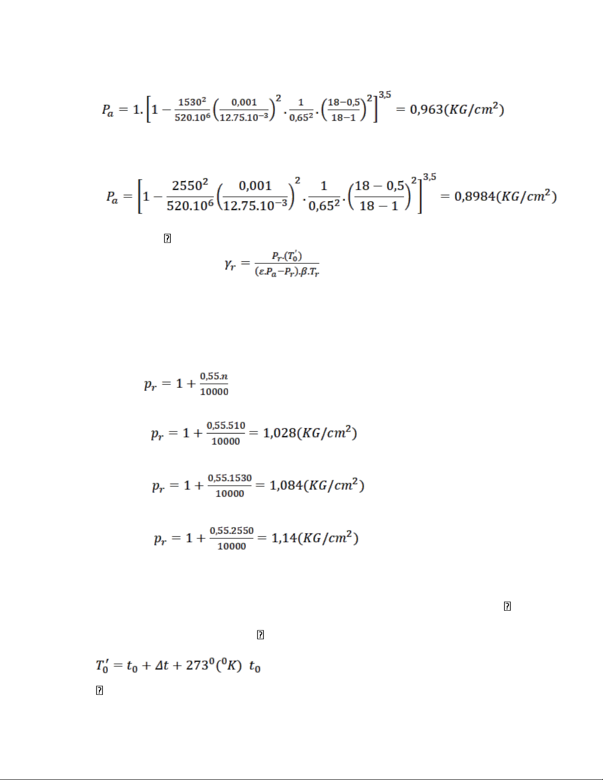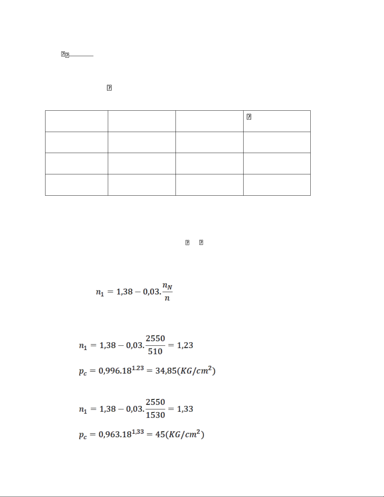 là tỉ số dãn nở sớm tính theo công thức: .Tc n = 510 (v/ph) (KG/cm2) n = 1530 (v/ph) (KG/cm2) n = 2550 (v/ph) (KG/cm2) n2 1