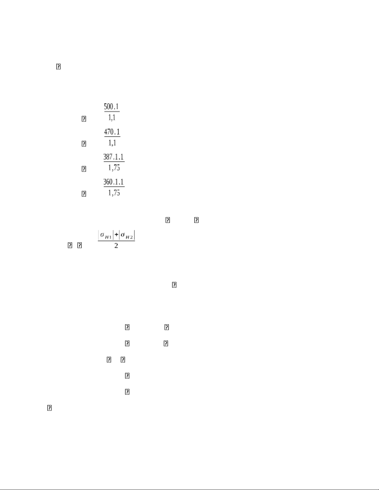 Theo công thức (II -17a) và (II - 18a), ta tính được:   [H]1 =   = 454,54 Mpa;   [H]2 =   = 427,27 Mpa;   [F]1 =   = 221,14 MPa;   [F]2 =   = 205,71 Mpa.