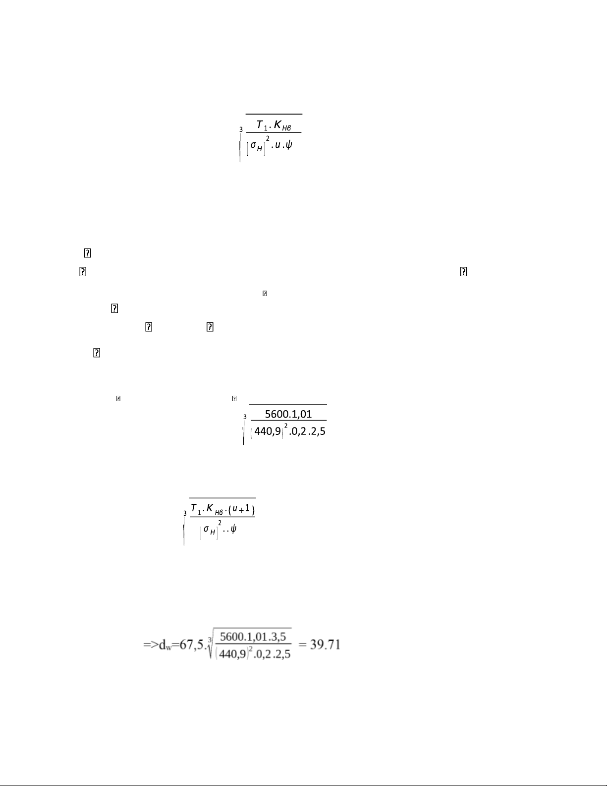- dw1 : Đường kính vòng chia của bánh chủ động.  -dw1 = 52,78 mm  - T1 = 56000(N.mm).  Còn    ¿¿¿¿