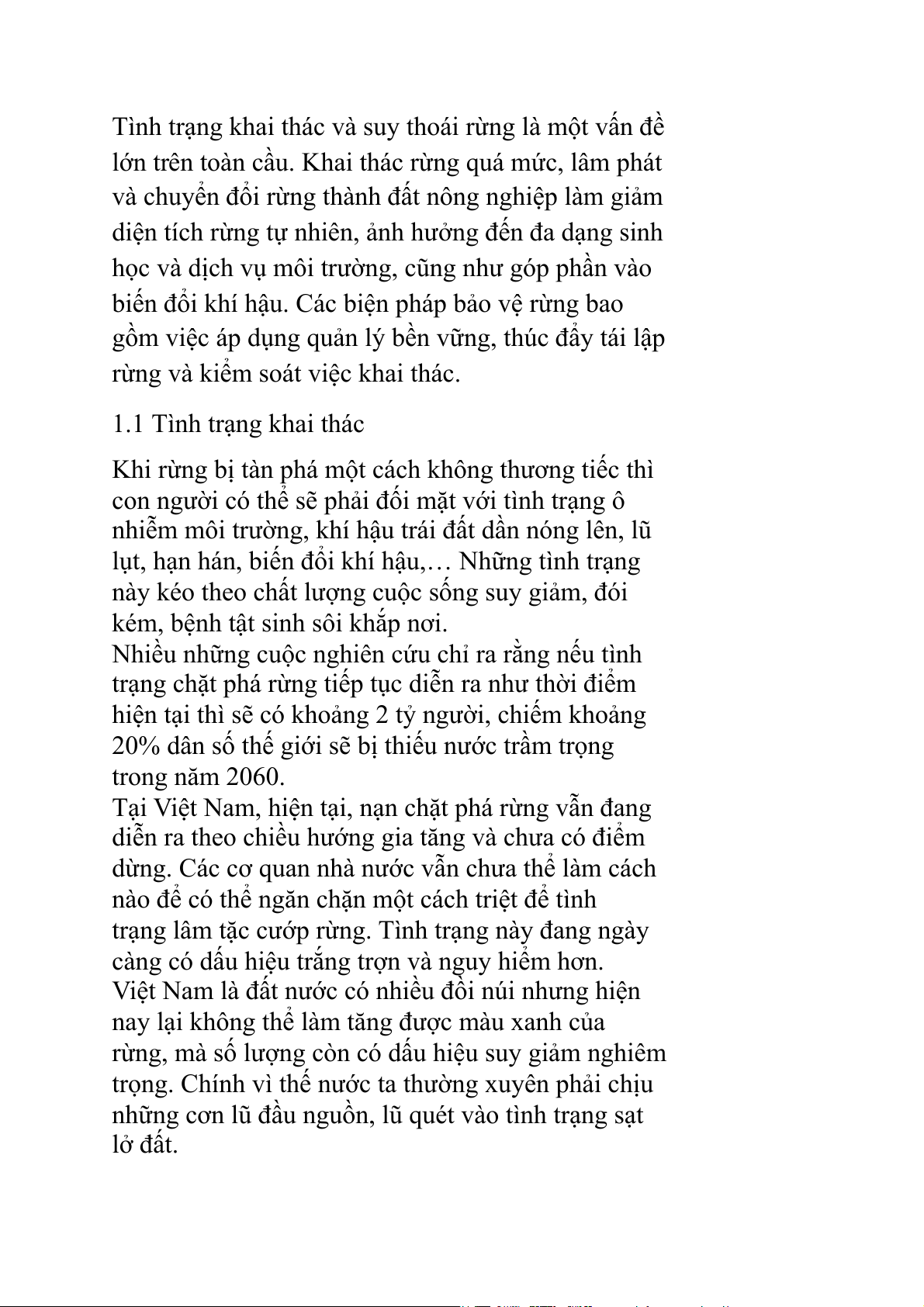 rừng và kiểm soát việc khai thác. 1.1 Tình trạng khai thác