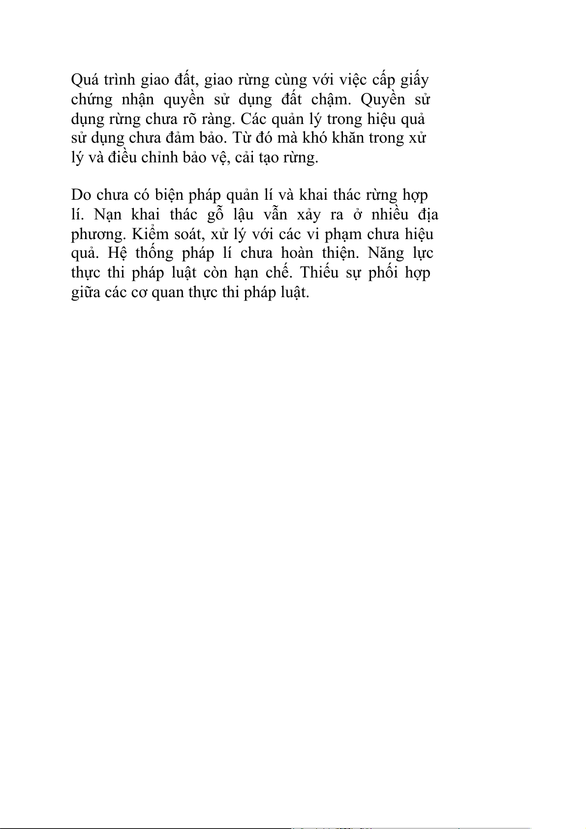 Do chưa có biện pháp quản lí và khai thác rừng hợp