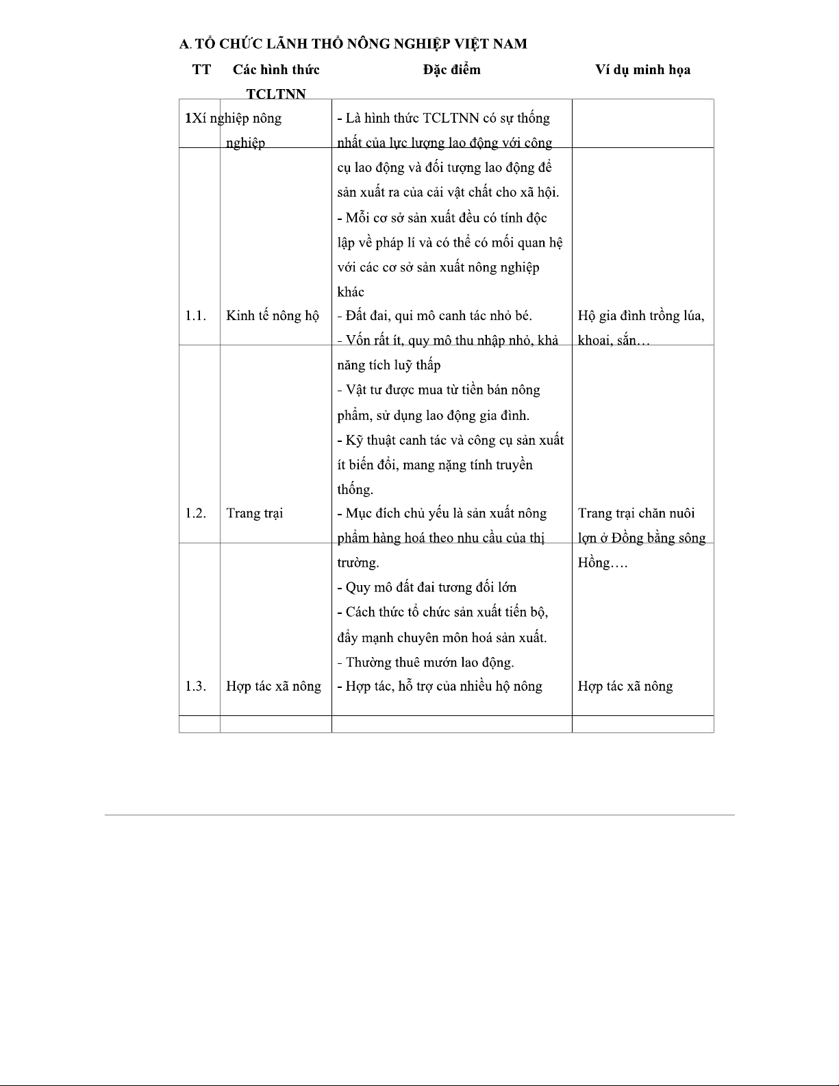 TỔ CHỨC LÃNH THỔ NÔNG NGHIỆP VIỆT NAM: CÁC HÌNH THỨC VÀ ĐẶC ĐIỂM