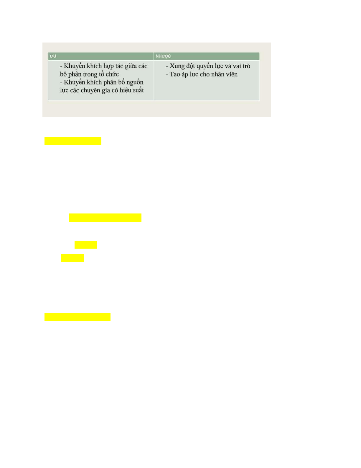 -Nhiệm vụ đc tapah hợp thành các bộ phận chức năng -Quyền lực tập trung -Phạm vi quản lý hẹp 3. Cơ cấu ma trận