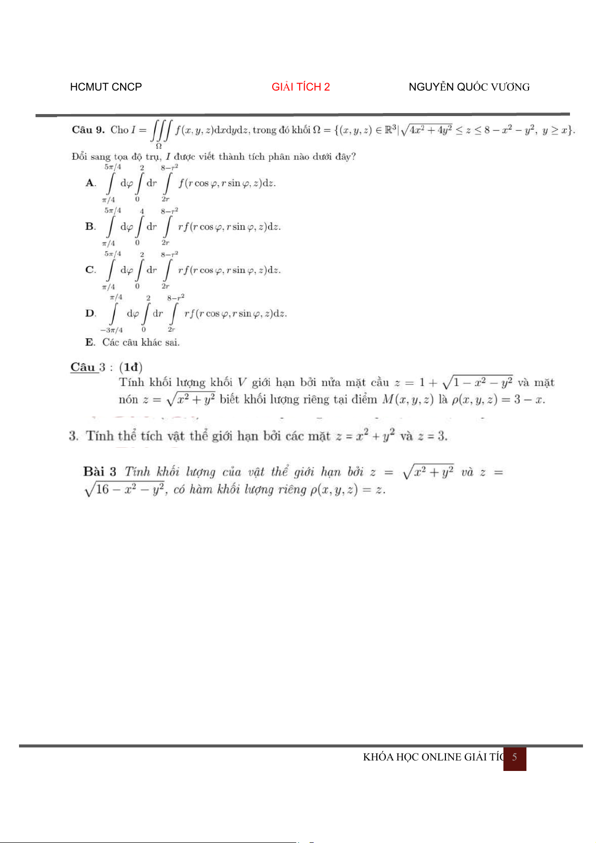 KHÓA HỌC ONLINE GIẢI TÍC 5 HCMUT CNCP GIẢI TÍCH 2 NGUYỄN QUỐC VƯƠNG