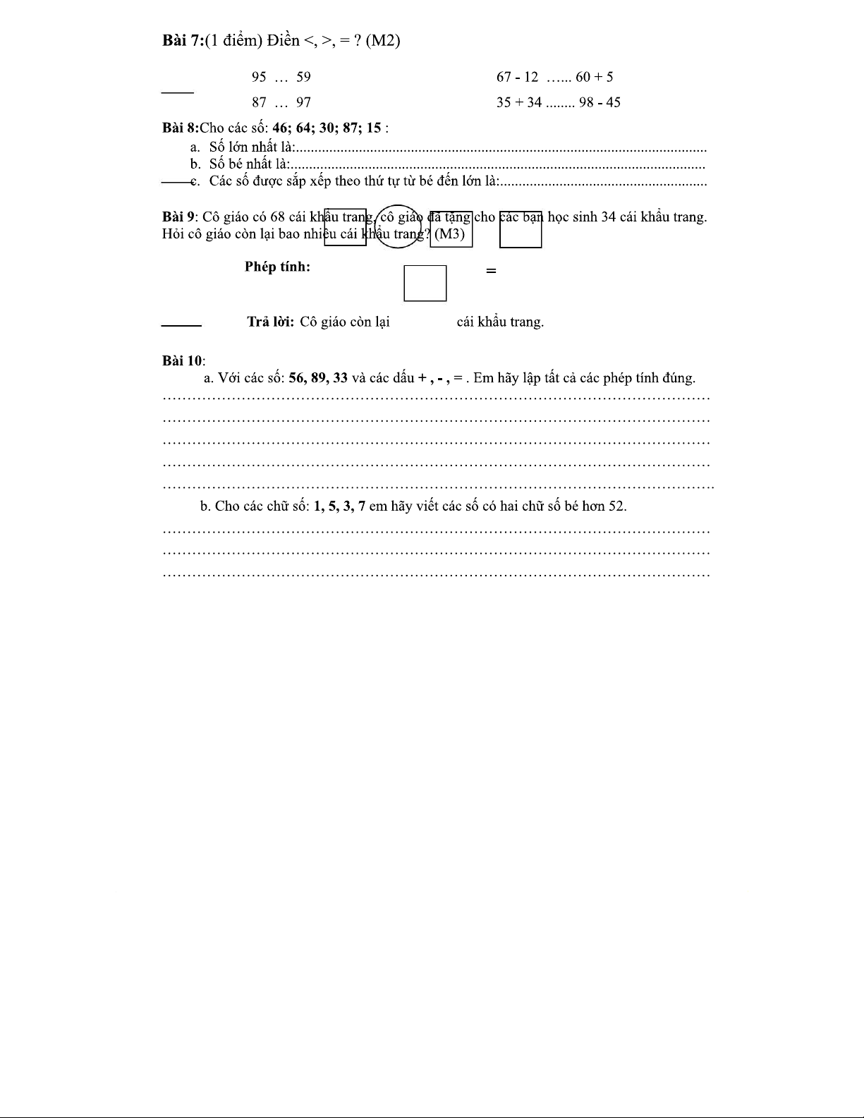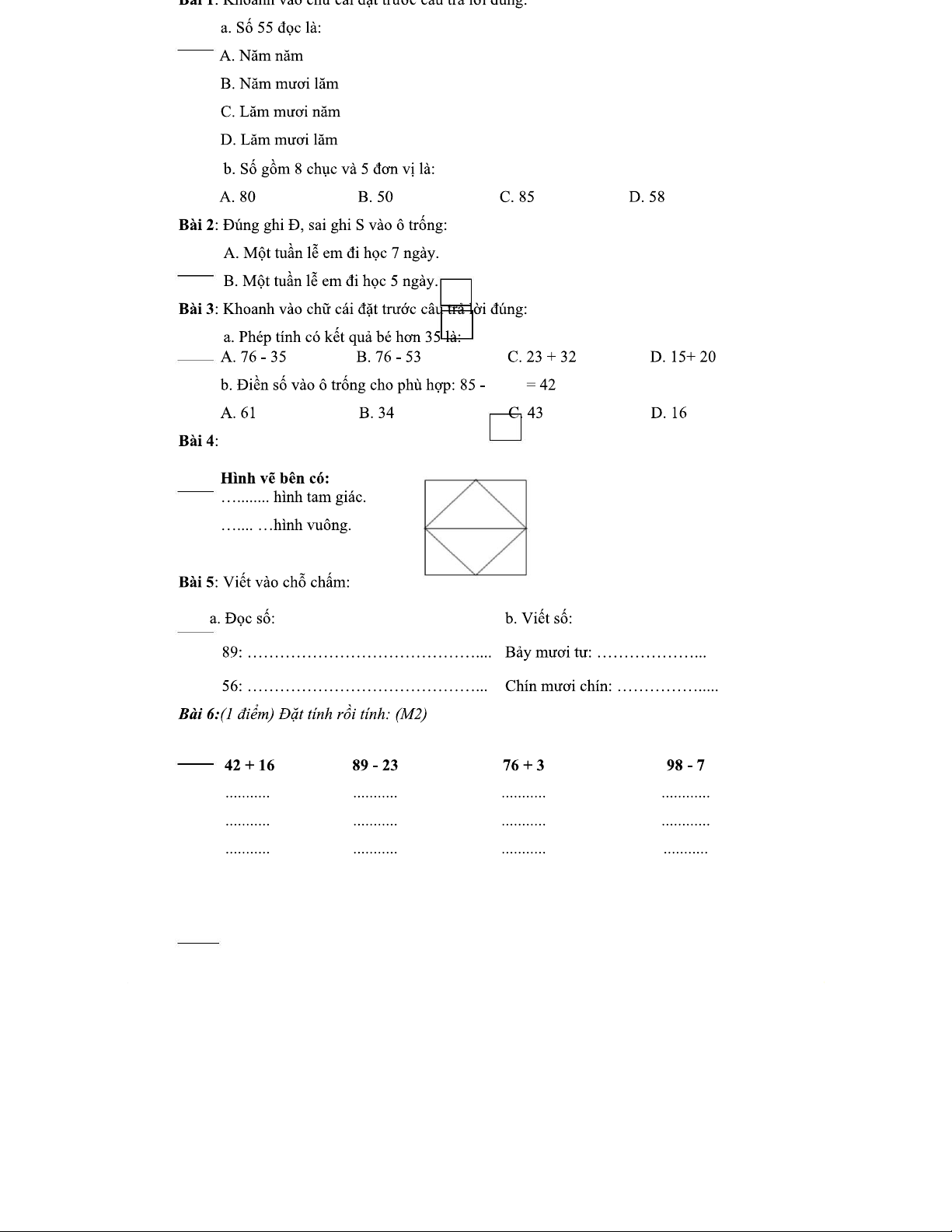 Toán 1: Bài Tập Giải Toán và Đánh Giá Kết Quả Học Tập