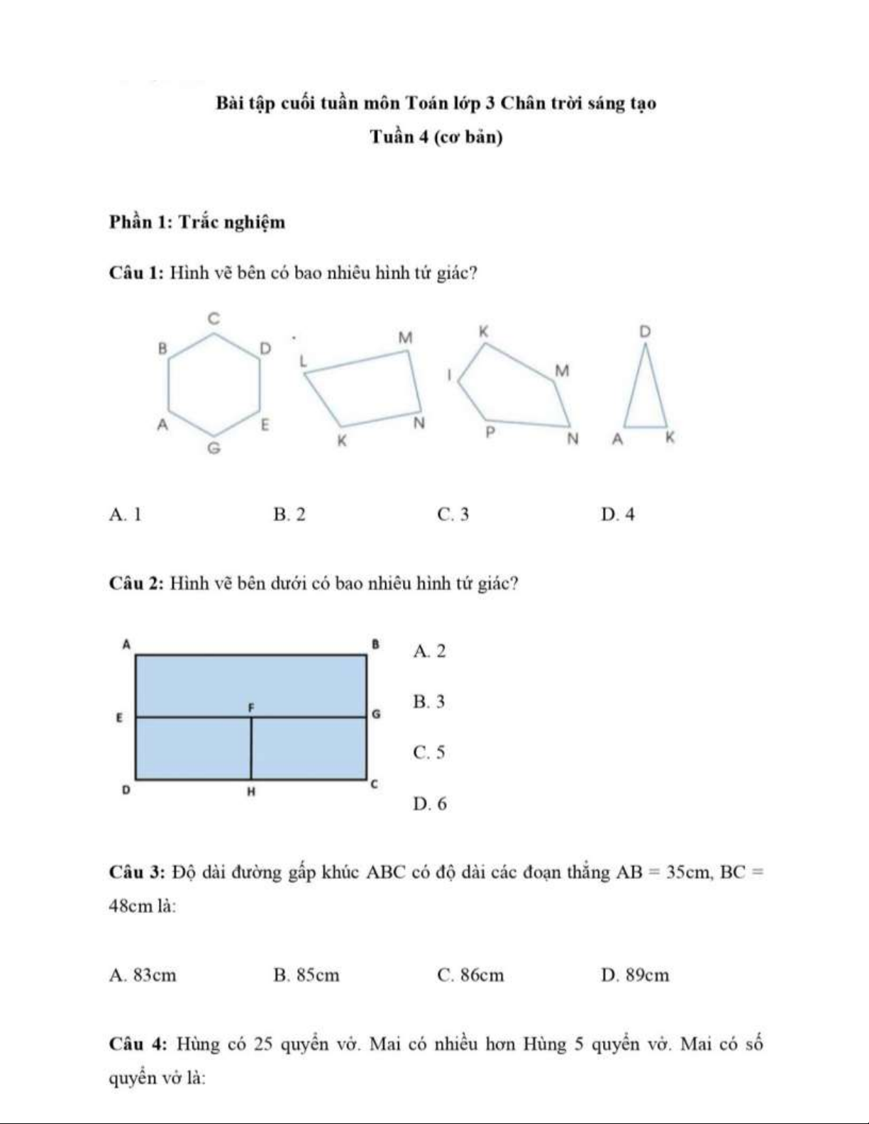 Bài tập cuối tuần 4 | Toán lóp 3