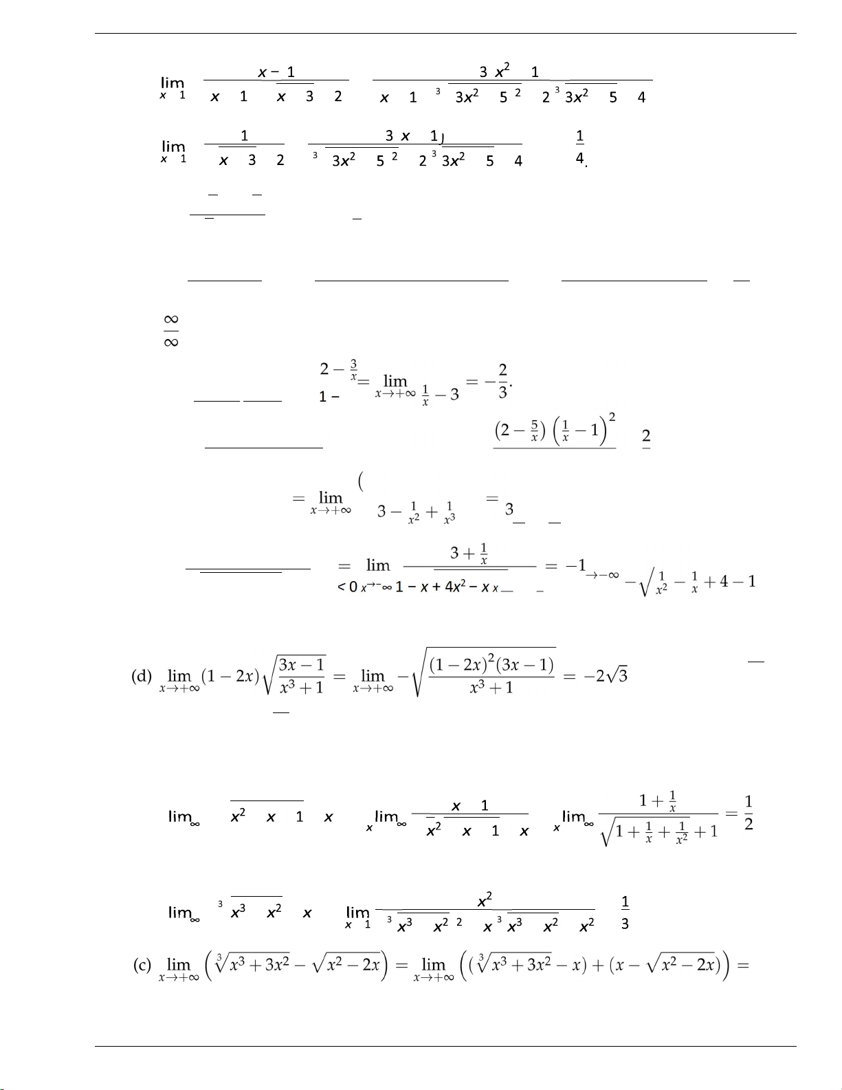 = lim (x − 2) = −3 − 2 = −5. x→−3 x + 3 x→−3 x + 3 x→−3 √ x + 8 − 3 x − 1 1 1 (b) lim = = = √ .x→1 x √ + − → ( + + )( − )( + ) → ( + + )( + ) √ √ √3 2 + 5 ( √ + − ) − ( + − ) x + 3 − 3x