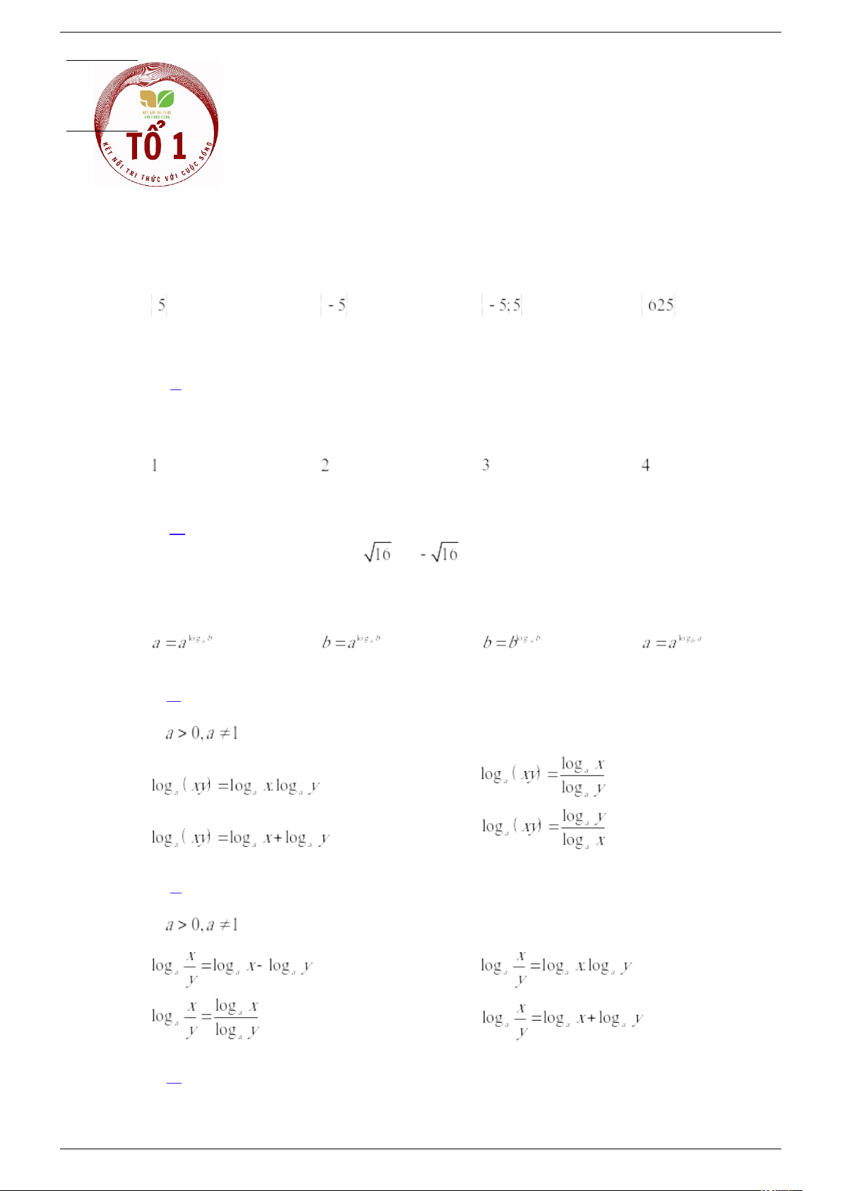 Câu 5: Cho và x, y là hai số dương khác 1. Phát biểu nào sau đây là đúng?