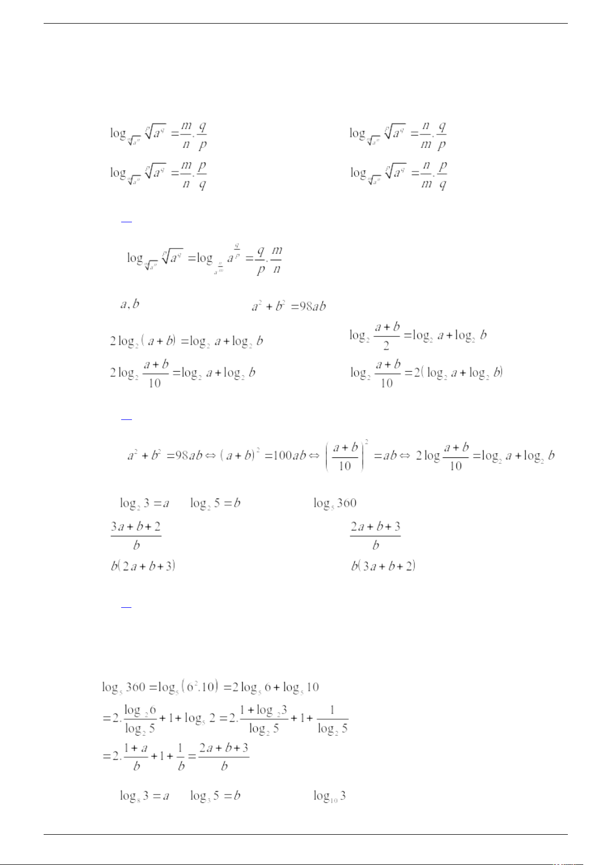 Câu 3: Cho a, b là số dương khác 1. Phát biểu nào sau đây đúng?