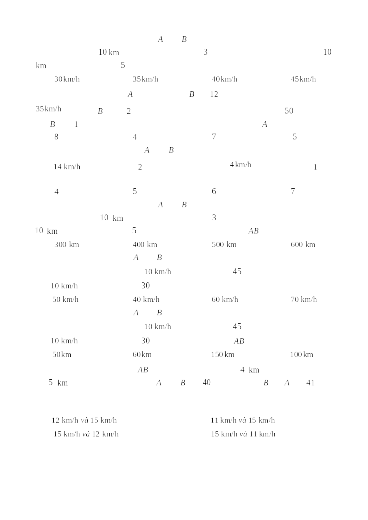 Câu 3. [TH] Hai người ở hai địa điểm cách nhau và khởi hành cùng lúc, đi ngược chiều nhau, gặp nhau ở vị trí cách một trong hai điểm khởi hành