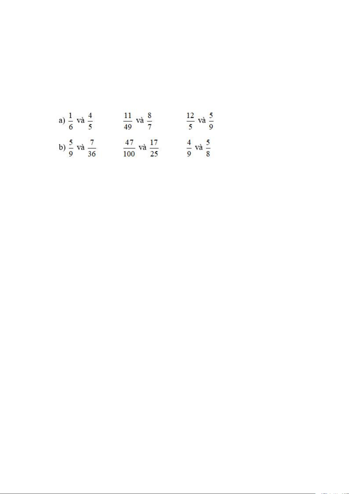 a) Viết các phân số lần lươt bằng 7/ 9 và 5/12 và có mẫu số chung là 36.