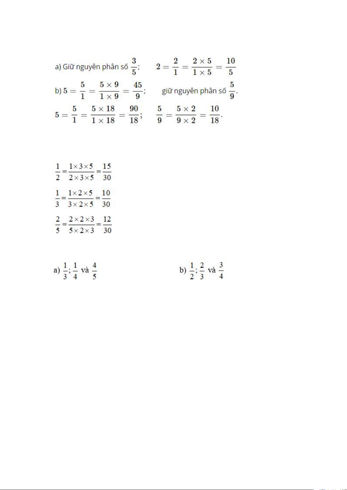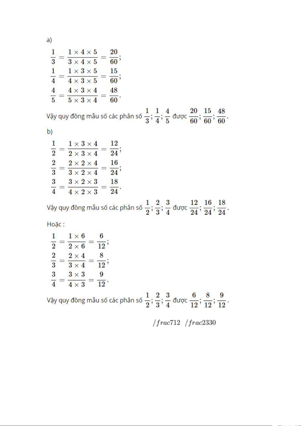 Khi quy đồng mẫu số ba phân số có thể làm như sau: