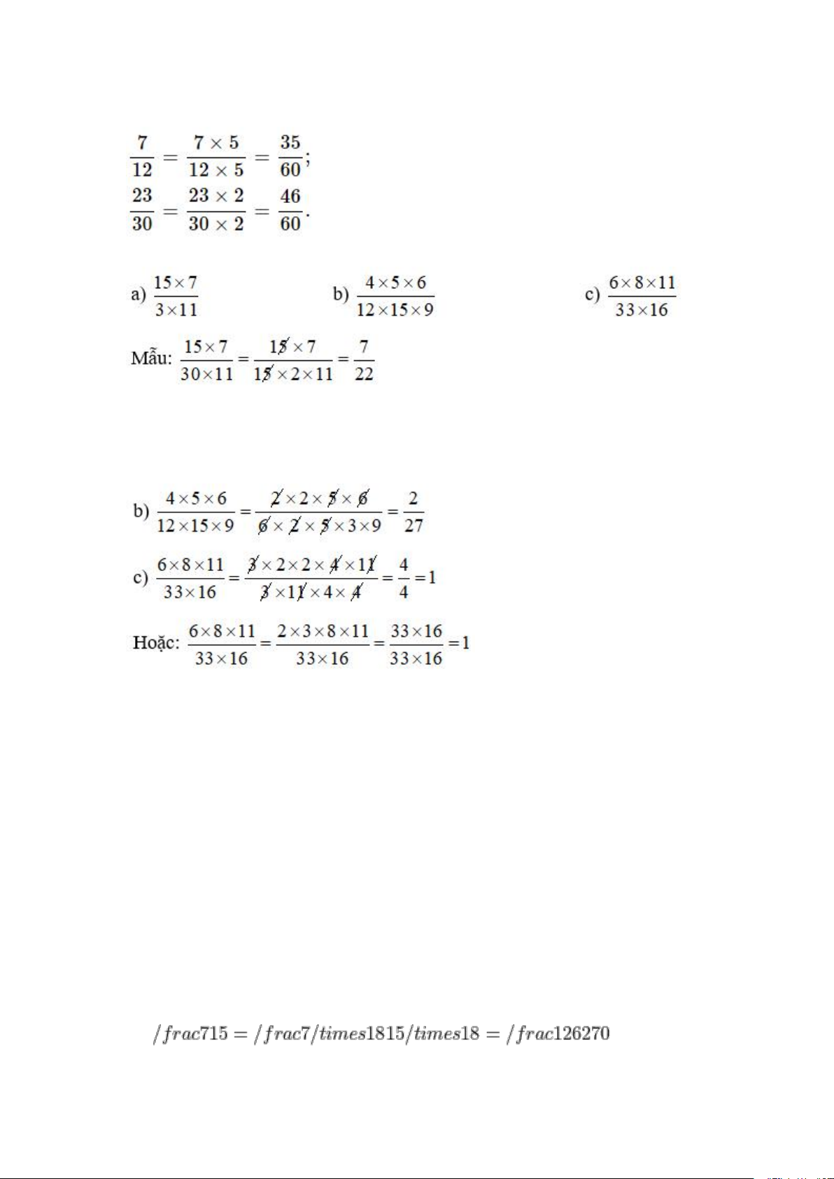 - Lấy tử số và mẫu số của phân số thứ nhất nhân với mẫu số của phân số thứ hai.