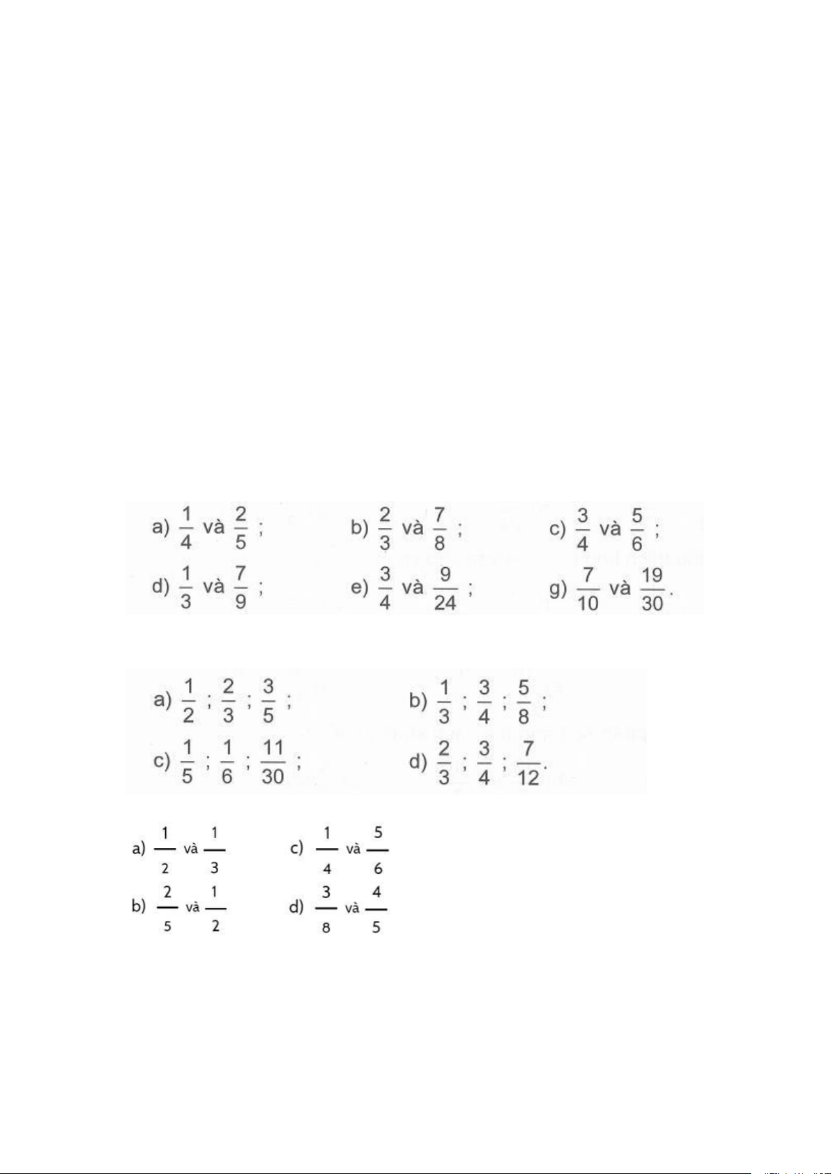 số có mẫu số khác nhau. Lớp 5: