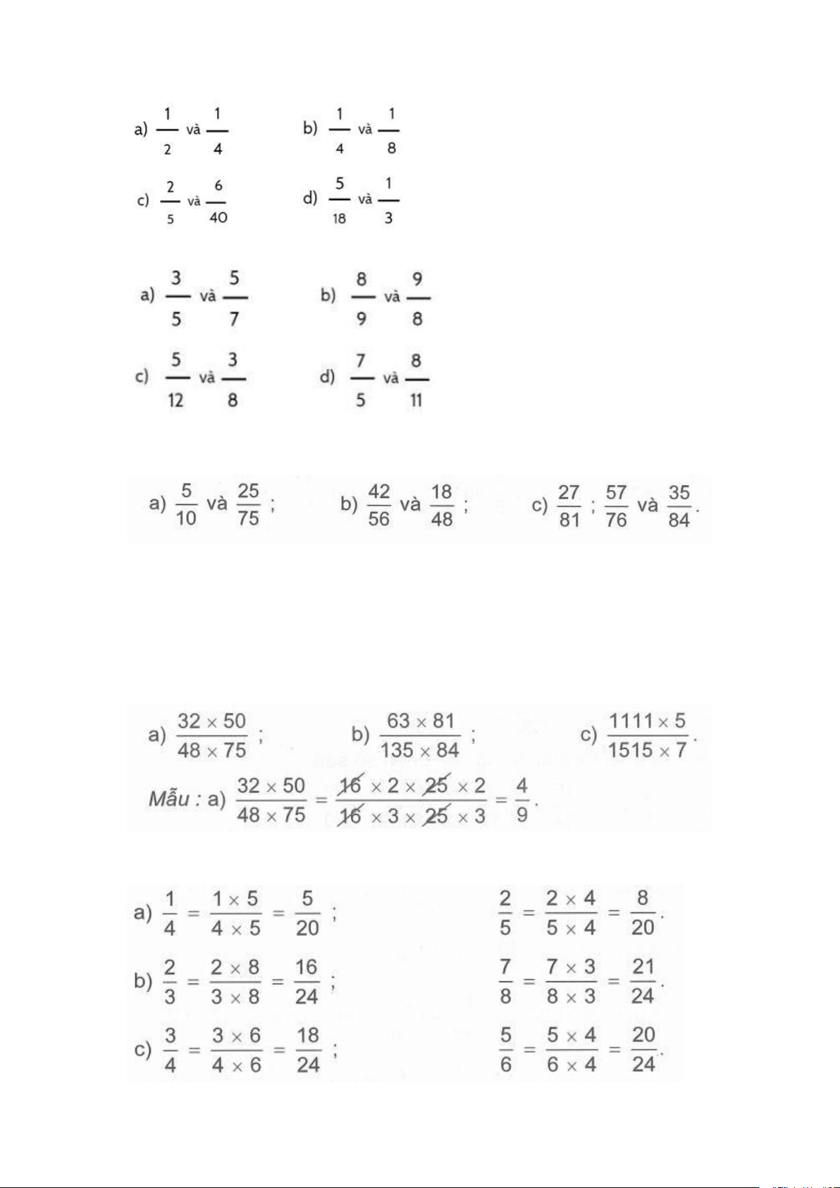 Rút gọn phân số rồi quy đồng mẫu số các phân số sau : Bài 7