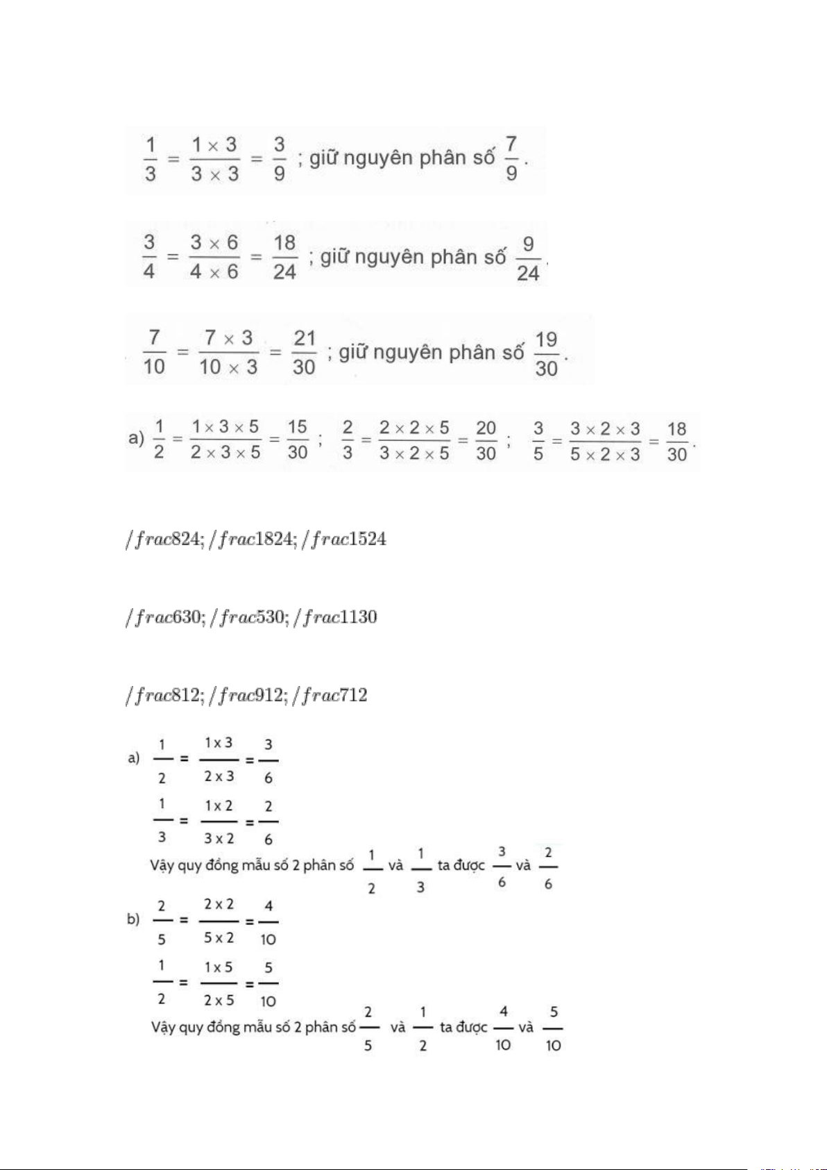 chia hết cho các mẫu số còn lại nên chọn MSC = 30. Việc thực hiện bước quy