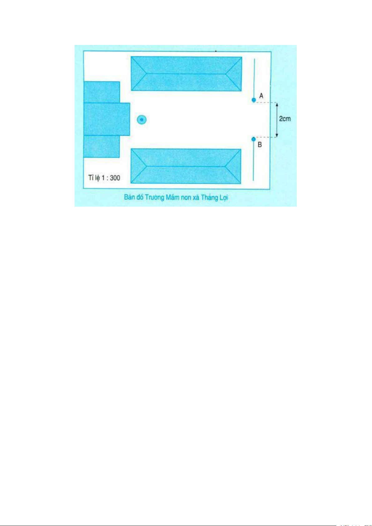 câu 7: Bản đồ khu đất trường tiểu học A vẽ theo tỉ lệ là 1 : 500. trên bản đồ