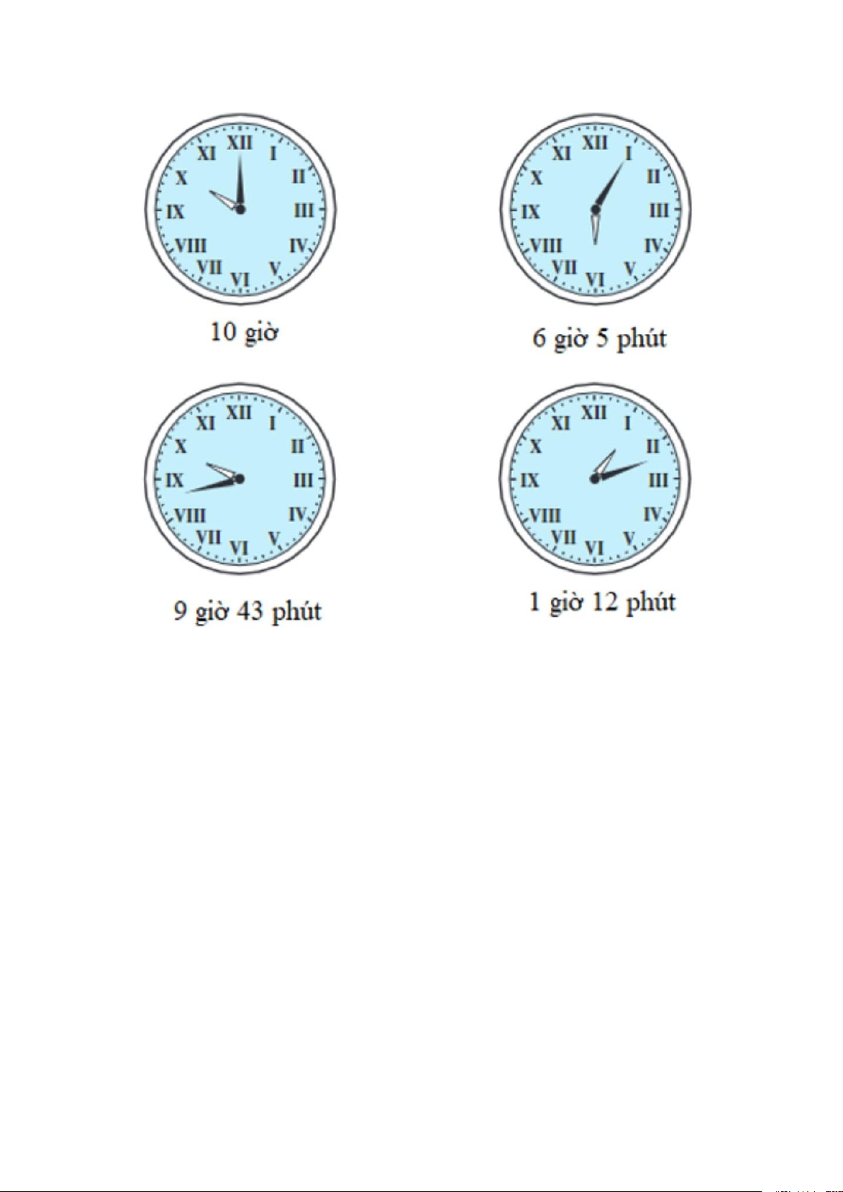 Quan sát đồng hồ để tìm thời gian phù hợp. Lời giải: