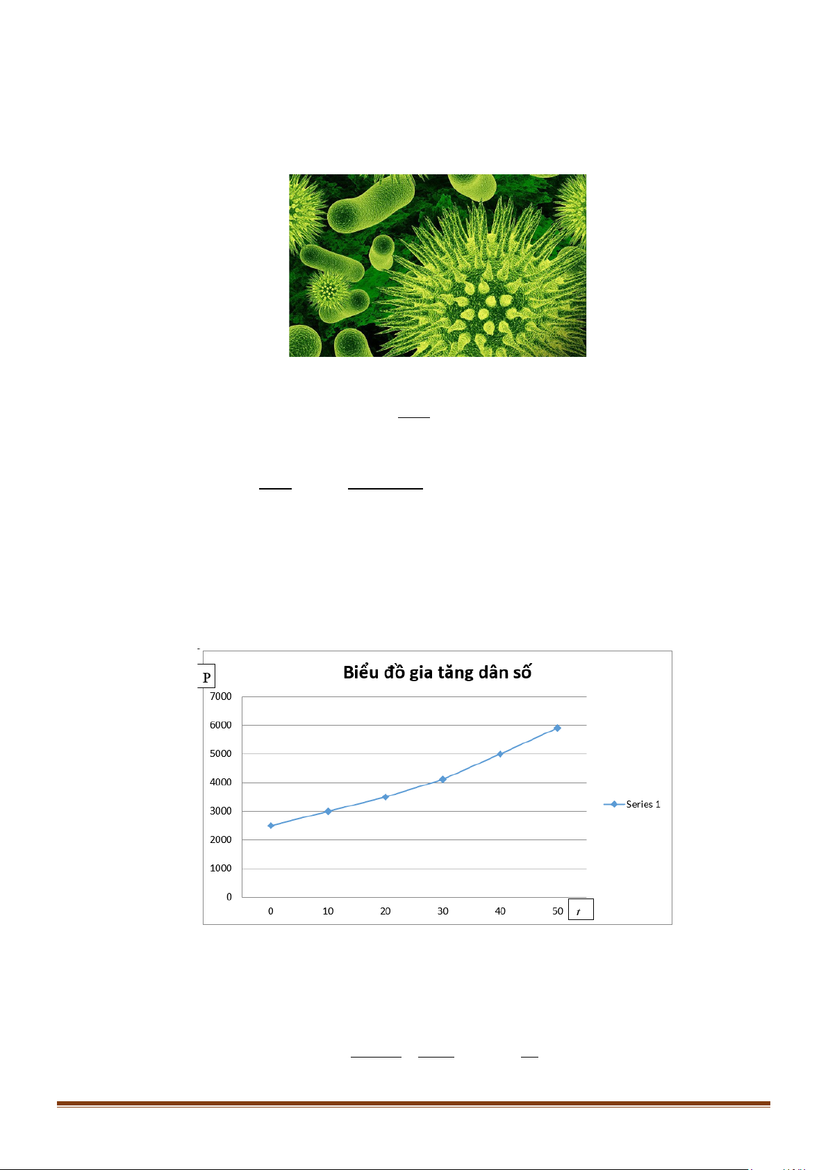 . Để số lượng vi khuẩn là 100.000 con thì. ( ) 0.195 = 5000. t Q t e = 100.000 0.195t 1 ⇔ e = 2 ⇔ t = ln 20 ≈15.36(h). 0.195