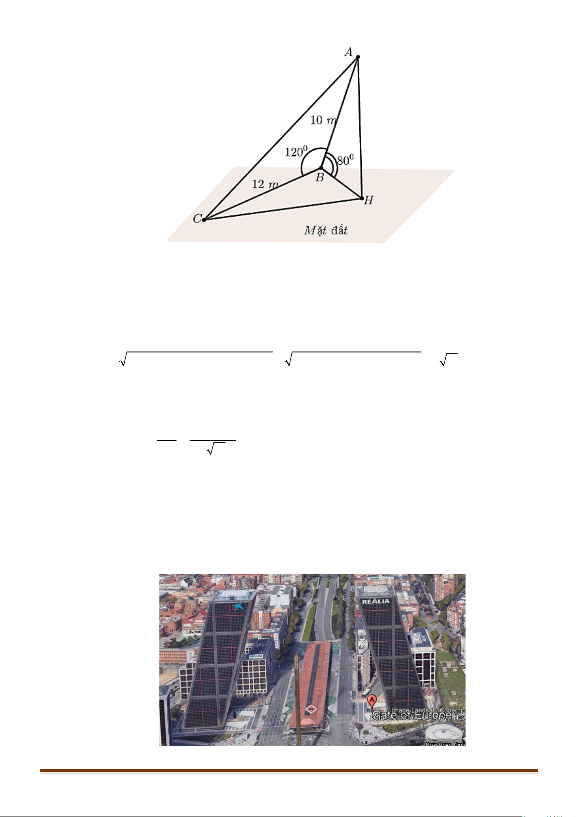 Vì AH vuông góc với mặt đất nên AH ⊥ BH 0 0 ⇒ AH = A . B sin80 =10.sin80 2 2 0 2 2 0