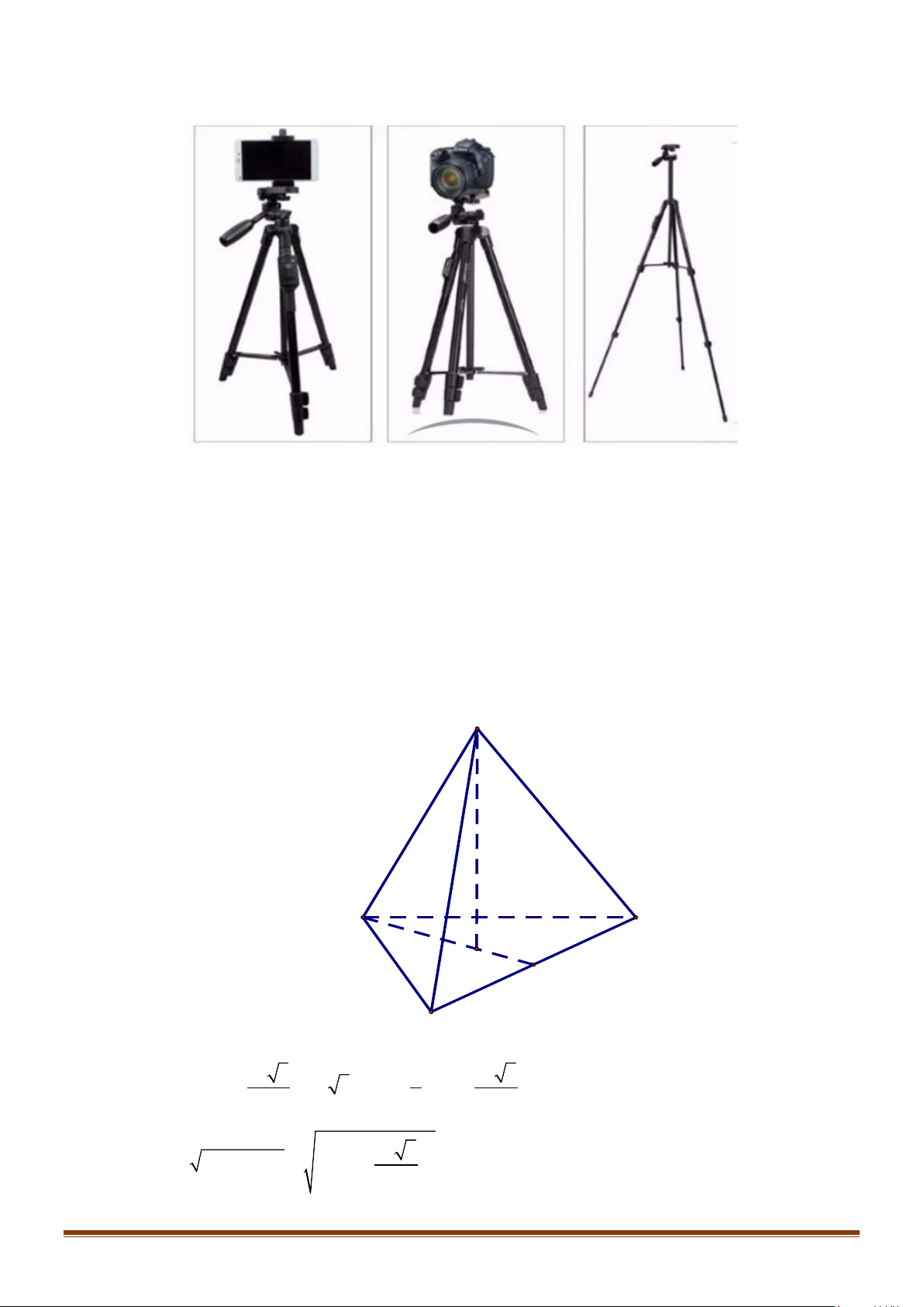Gọi điểm tiếp xúc 3 chân của tripod với mặt đất là A, B,C và 3 chân của tripod là SA, SB, SC . Ta có A