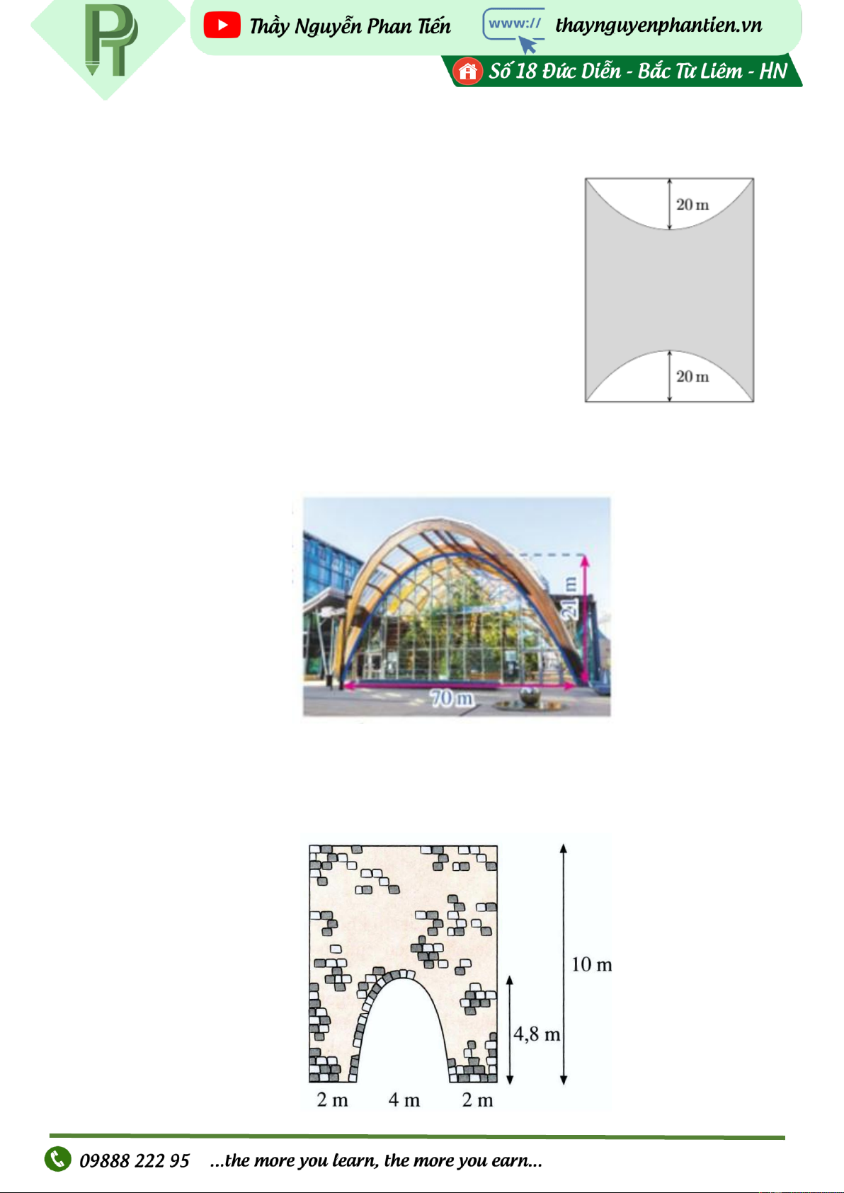 mặt kính cần lắp vào, biết rằng vòm cửa cao 21 m và rộng 70 m (Hình). VD3: