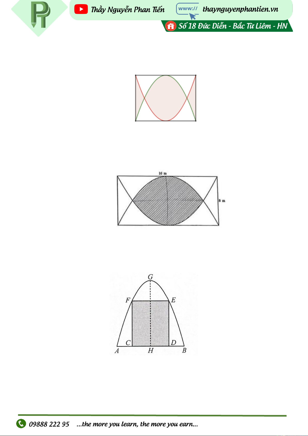 đường parabol và hình chữ nhật có chiều rộng 6m và chiều dài 8m (phần tô đậm trong hình vẽ