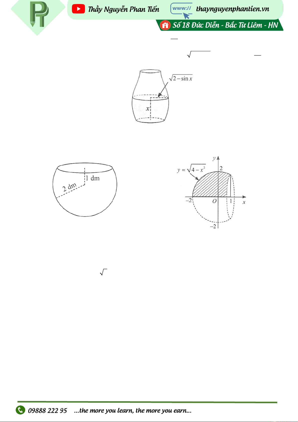 chiều cao là x (dm) thì mặt nước là hình tròn có bán kính 2 − sin x (dm) với 0 x 2