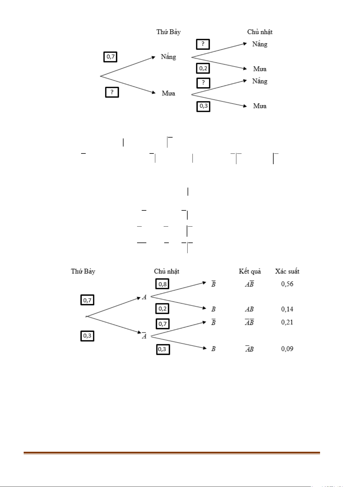 Do đó P( A) =1− P( A) = 0,3; P(B A) =1− P(B A) = 0,8; P(B A) =1− P(B A) = 0,7 .