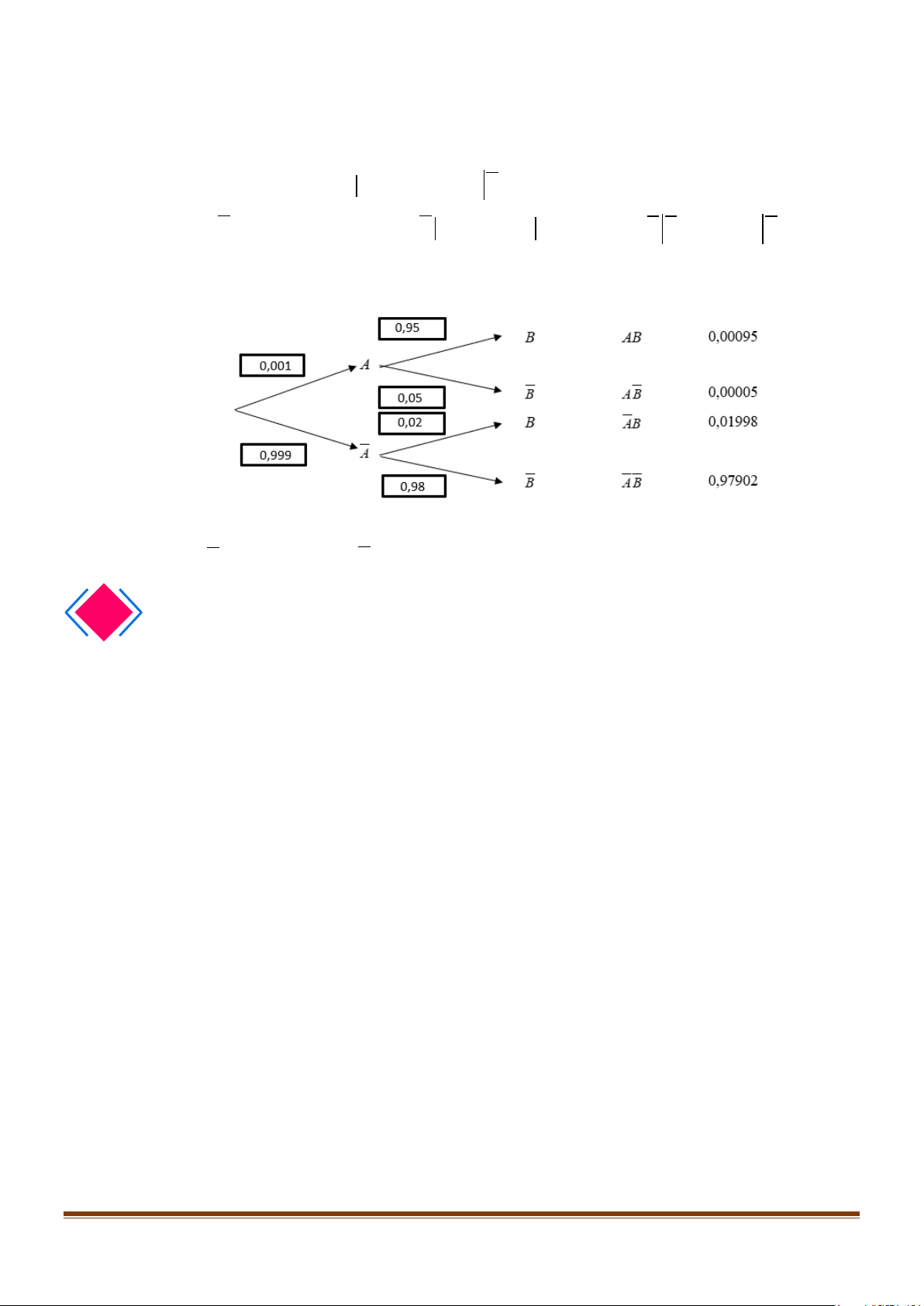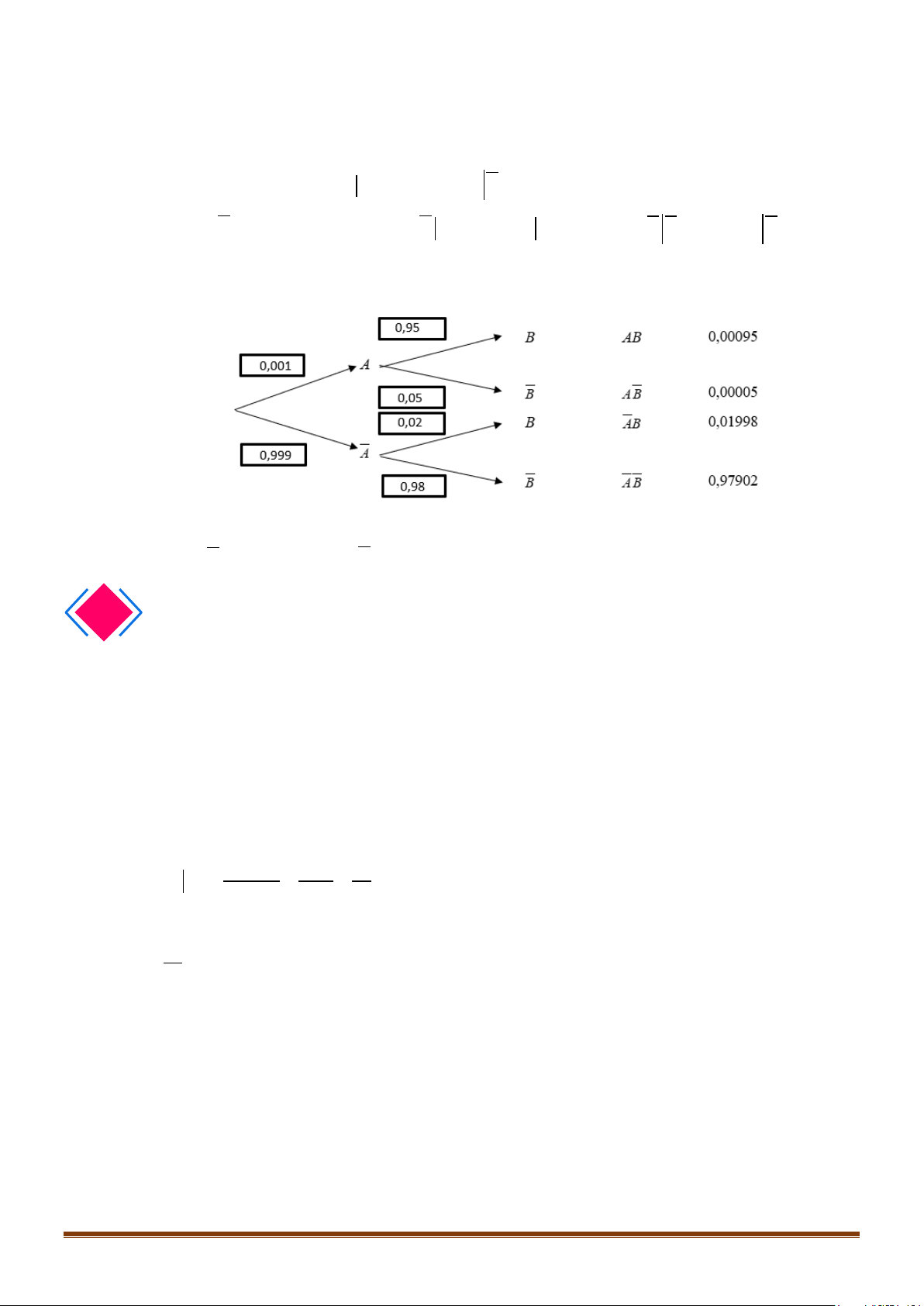 Do đó P( A) =1− P( A) = 0,999; P(B A) =1− P(B A) = 0,05; P(B A) =1− P(B A) = 0,98.