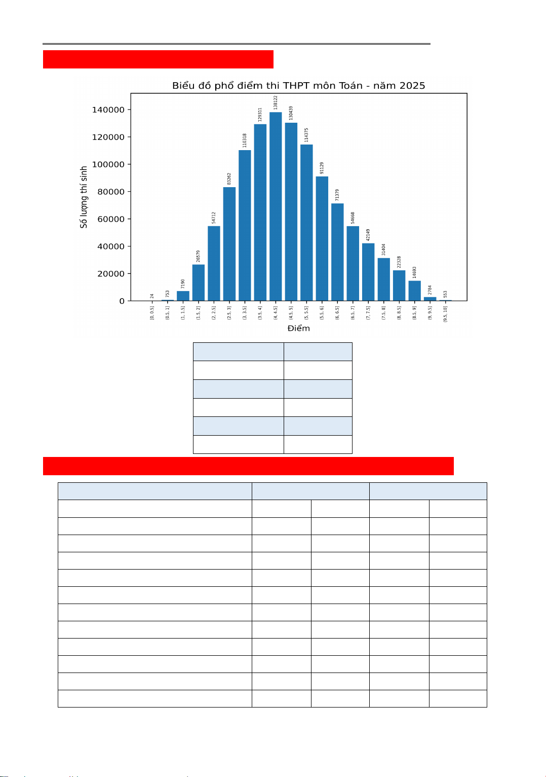 PHỔ ĐIỂM MÔN TOÁN NĂM 2025: Số thí sinh 1,126,172 ĐTB 4.78 Trung vị 4.6 Độ lệch chuẩn 1.68 Số điểm 10 513 Số điểm 0 9