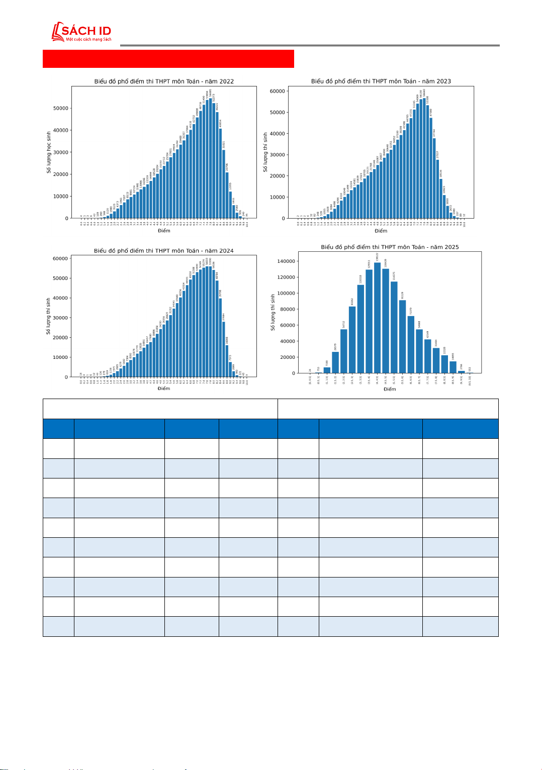 PHỔ ĐIỂM MÔN TOÁN NĂM 2022 – 2025