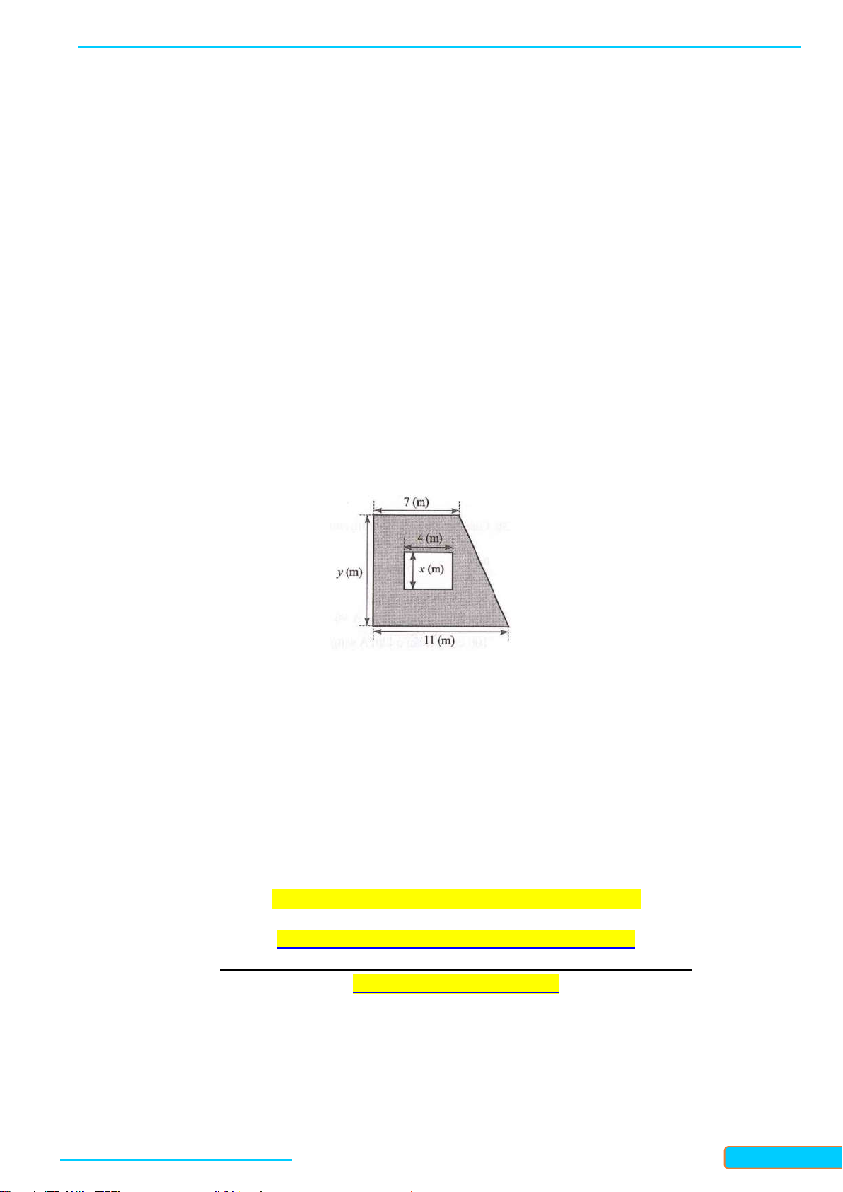 Câu 13: Một mảnh vườn có dạng hình chữ nhật với chiều rộng là 10 m . Chủ vườn đã làm con đường