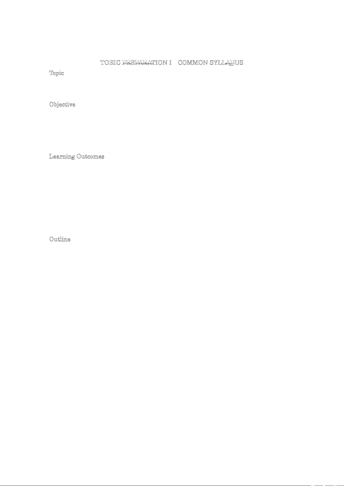 TOEIC PREPARATION I COMMON SYLLABUS Topic