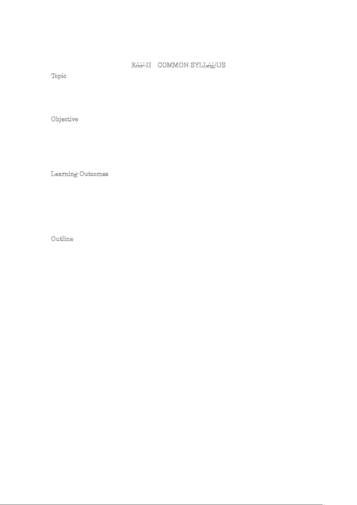 Forum of Language Instructors, Volume 9, 2015 Forum of Language Instructors, Volume 10, 2016 EAP II COMMON SYLLABUS Topic