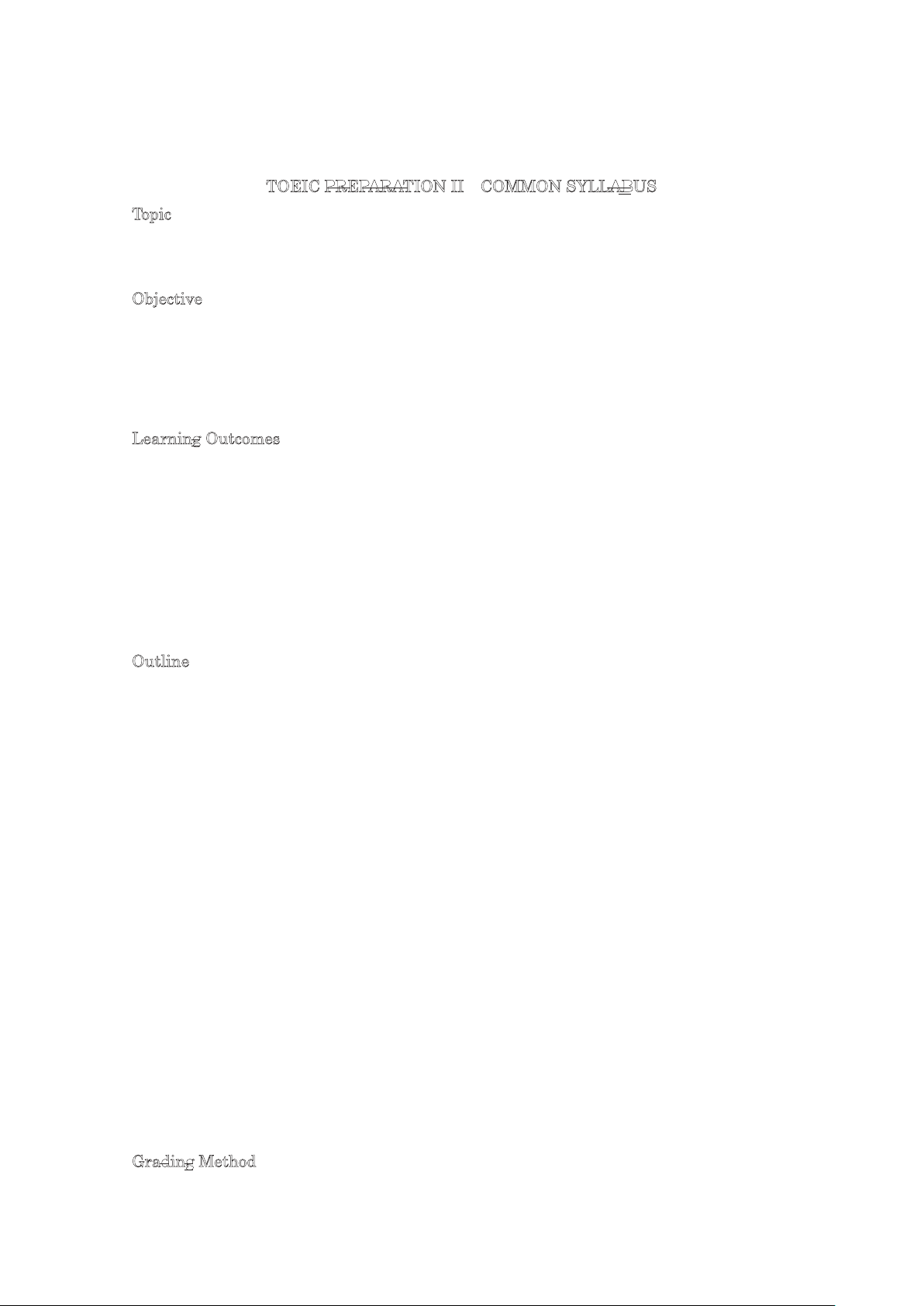TOEIC PREPARATION II COMMON SYLLABUS Topic
