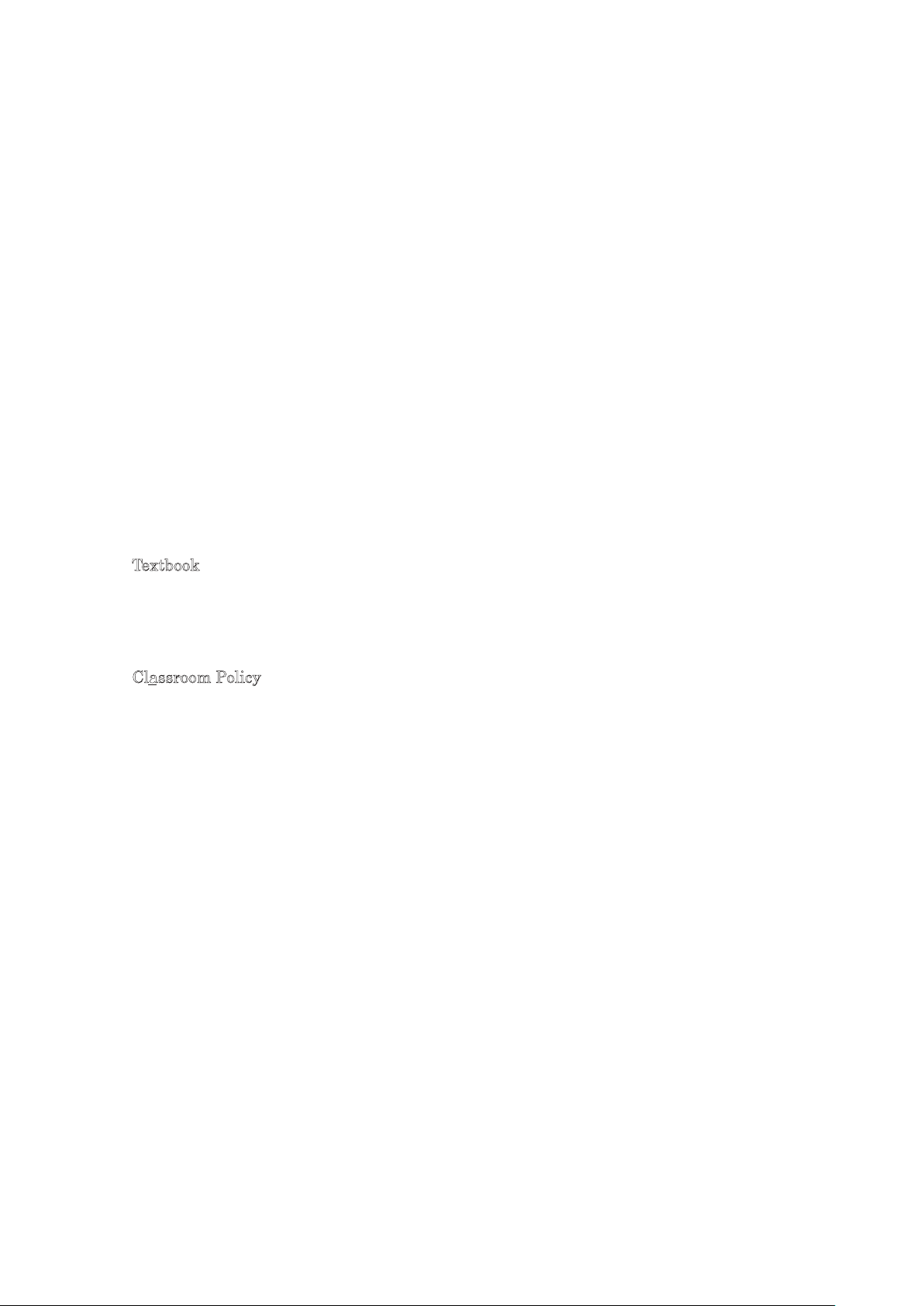 Introductory Course. (Students must have their own copy.) Classroom Policy